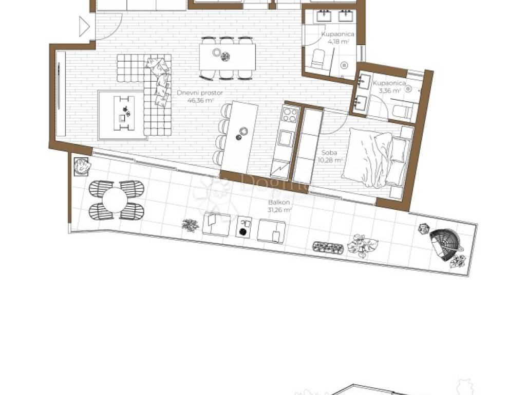 We present to you an exclusive opportunity to buy an apartment in a modern new building with only 6 residential units, located in an excellent location - just the second row from the sea! Construction starts: fall 2025. Planned completion: summer 2026. Floor plan and areas: Living area: 46.36 m Bathroom 1: 3.36 m Bathroom 2: 4.18 m Bedroom 1: 9.99 m Bedroom 2: 10.28 m Bedroom 3: 10.54 m Terrace: 25.04 m Total area (P): 109.75 m Net usable area (Pk): 90.97 m Built-in equipment and materials: Air conditioning: Daikin - top efficiency and comfort Sanitary ware: Hansgrohe and Geberit - modern design and reliability Underfloor heating: in bathrooms Ceramics: Premium Italian ceramics Floors: oak parquet of the 1st category Joinery: aluminum, energy efficient and elegant Price: on request Interested? Contact us for more information, floor plans and appointment booking!