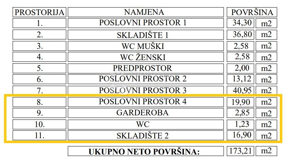 Renoviran poslovni prostor u prizemlju ukupne površine 40m uključuje prostor za obavljanje djelatnosti, garderobu, WC i skladište.