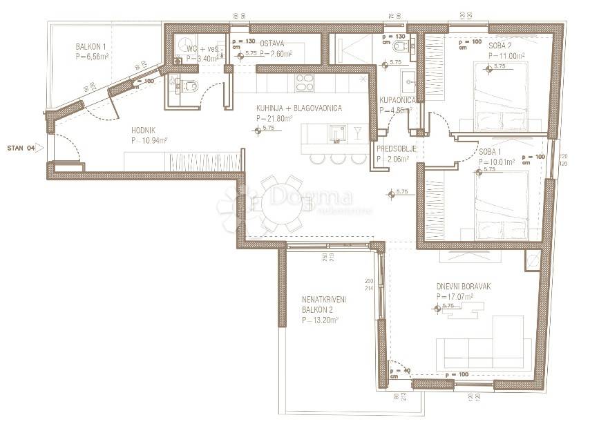 Quality and design are guaranteed joinery by DWG d.o.o., sanitary fittings and tiles from Credo Center. The apartment comes with a parking space, and the building offers a shared area with barbecue and a garden surrounding the building, ideal for relaxation and socializing.
