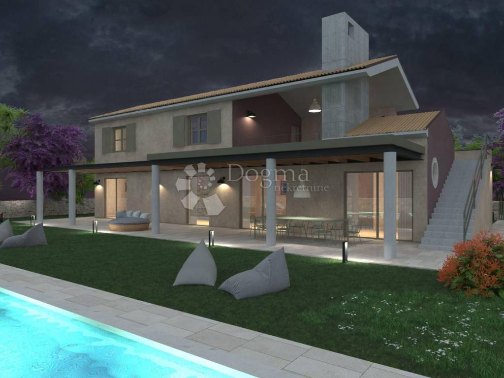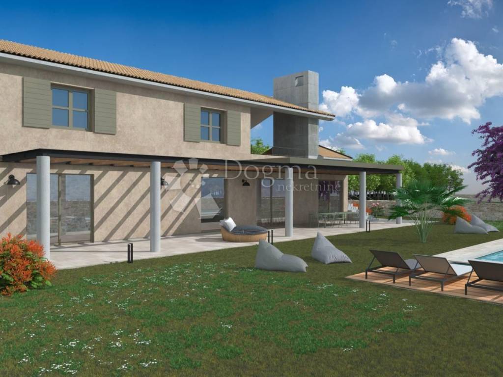 Located in a tranquil setting at the edge of Svetvinčenat, this modern villa offers 203 m of living space on a beautifully landscaped plot of 928 m. Its elevated position ensures a permanent, unobstructed view of the surrounding nature and the distant sea.