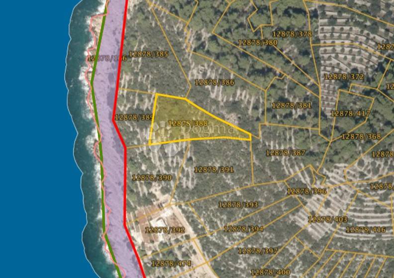 Zemljište je pozicionirano uz more na samom ulazu u Vela Luku,izlaz na more i jedan dio pošumljen.