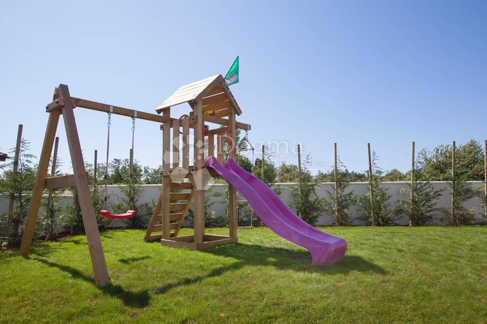 The villa has an area of 230 m2 and consists of a spacious, modern kitchen with dining area, living room, as many as four bedrooms with private bathroom, which guarantees absolute privacy. The living room and kitchen are separated by a glass wall from the landscaped yard. This ensures light throughout the day. The kitchen and living room open onto a covered terrace where there is a space for socializing, swimming pool and sun deck. The villa also has an area with a sauna, jacuzzi and children's playroom.