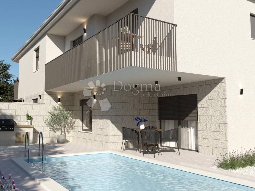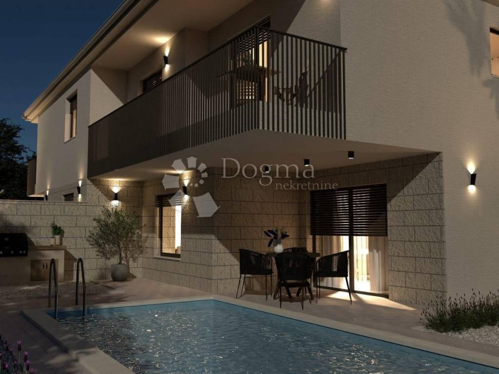 We present to you a charming semi-detached house with a swimming pool, located in a peaceful area near Malinska. With a total living area of 111.20 m, the house is spread over two floors ground floor and first floor.