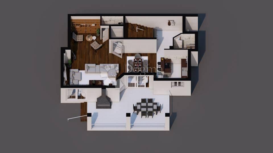 LUXURY THREE-STOREY APARTMENT IN FAŽANA 100 M FROM THE SEA Fažana is a small but extremely charming fishing village located along the Istrian coast, known for its idyllic setting, crystal clear sea and sandy beaches. Here you can enjoy a peaceful life with beautiful sea views, but also be close to all the necessary amenities, restaurants and tourist attractions. Luxury property in Fažana for sale! This unique property represents the ultimate combination of luxury and comfort, located only 100 meters from the sea. A spacious three-story apartment with modern amenities, connected by an elevator that leads from the basement to the attic, is the perfect choice for those looking for privacy, but also elegance. Apartment description: - Basement: Garage, engine room, sauna, gym, bathroom, tavern with kitchen - ideal for relaxing and enjoying privacy. - Ground floor: Spacious kitchen, bathroom and living room with access to a large terrace, the perfect space for relaxing or socializing. - 1st floor: Four luxurious bedrooms, each with its own bathroom and balcony. Two bedrooms have a balcony with a beautiful sea view. - Attic: Spacious attic ideal for additional amenities or relaxation. This property is a real rarity on the market, with a private elevator and incredible sea views. It is perfectly connected to nature and the sea, making it an ideal choice for luxury living in Fažana. For more information or to arrange a viewing, please contact us! STEFANO PERUŠKO LICENSED AGENT Mobile 099/721-0395 stefano.perusko@dogma-nekretnine.com