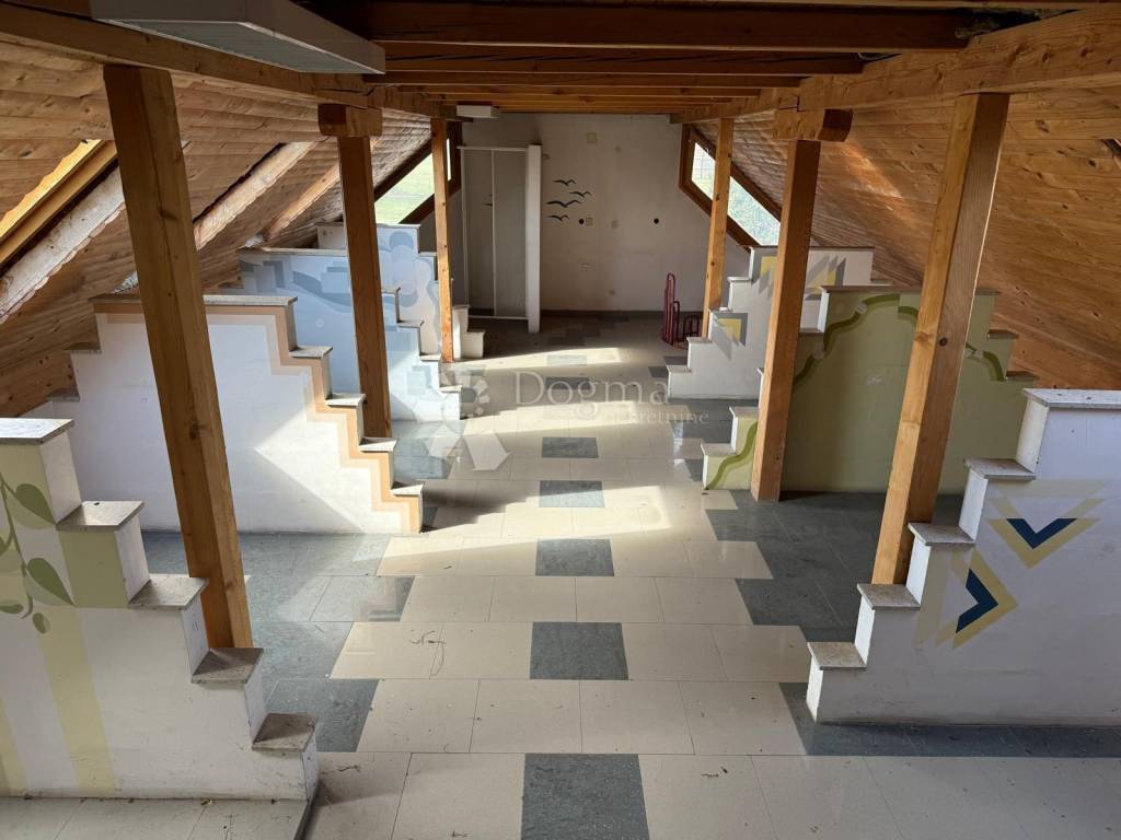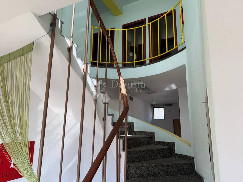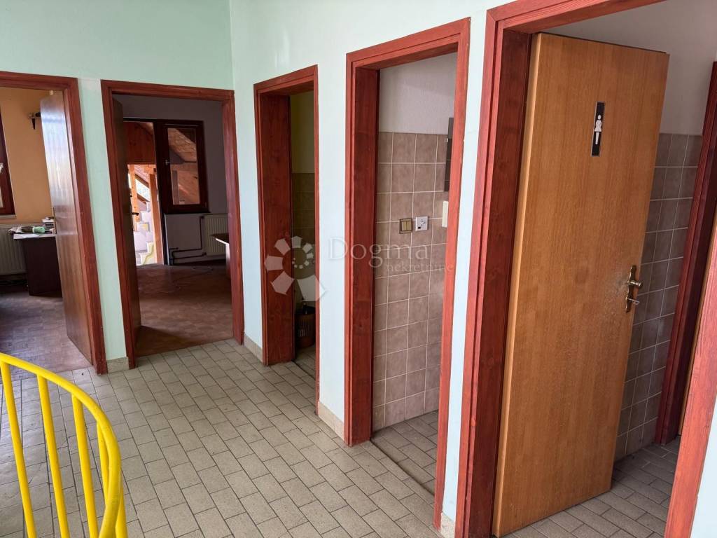U prizemlju se nalaze izložbeno-prodajni prostori otvorenog tipa, koji pružaju izvrsne mogućnosti za trgovinu ili uslužne djelatnosti. Na katu je smješteno pet ureda, čajna kuhinja i dva toaleta, što omogućuje funkcionalan i ugodan radni prostor. U podrumskom dijelu objekta uređen je vinski podrum dimenzija 10 x 3 metra, pogodan za skladištenje i prezentaciju vina ili drugih proizvoda.