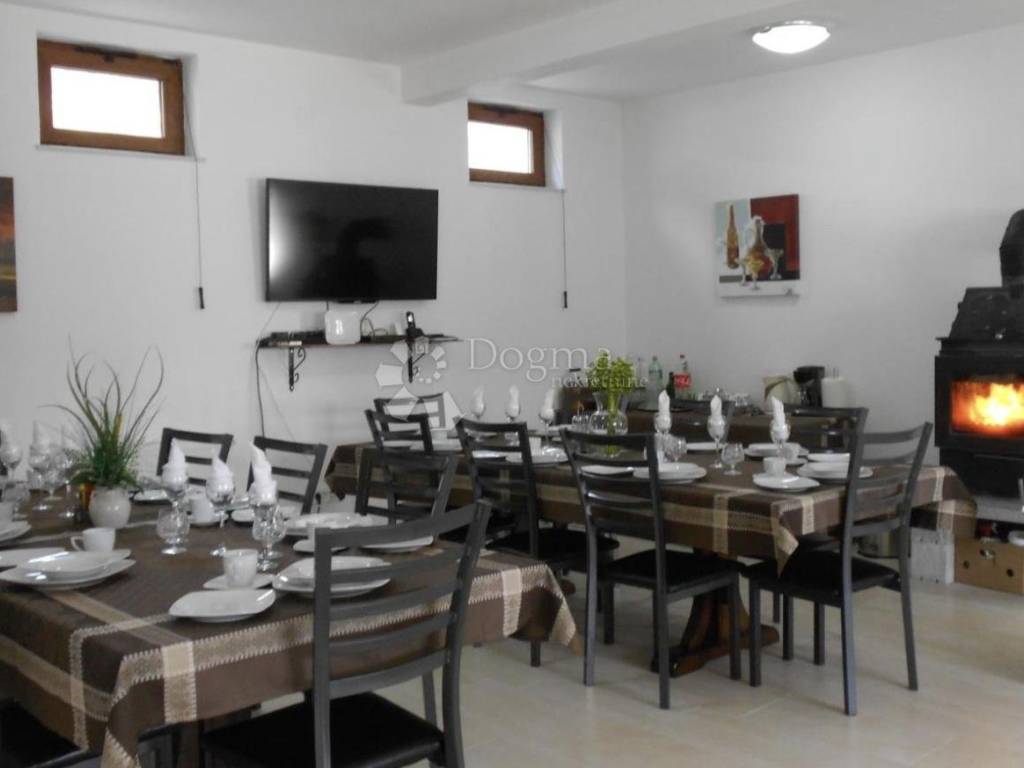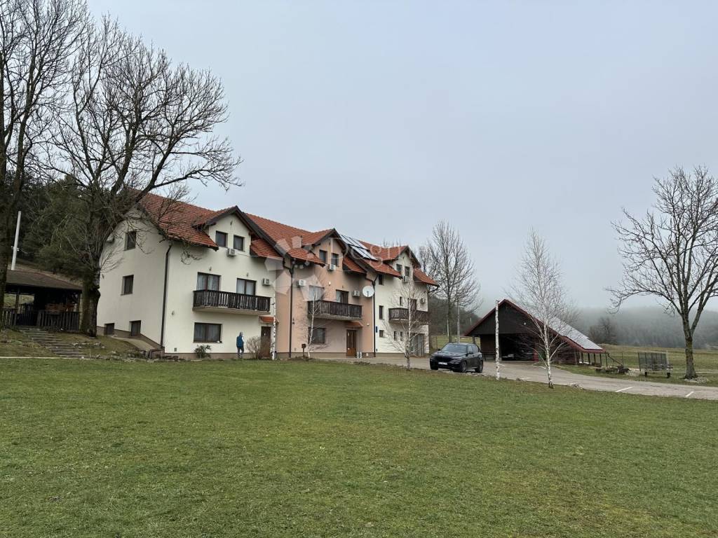 GLAVNE ZGRADE sa 4 zasebna apartmana, 8 soba s kupatilima , restoranom sa 30 sjedećih unutarnjih mjesta, recepcijom, kuhinjom, salom za objedovanje , sa ukupno 15 otkrivenih parking mjesta , 2 garaže i pomoćni objekt od 50 m2.