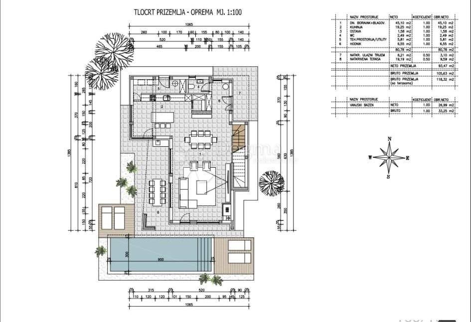 This luxury villa, located in a peaceful neighborhood near Umag, covers an area of 186.96 m with a plot of 478 m. The property is spread across two floors, offering the perfect blend of modern design and comfort.