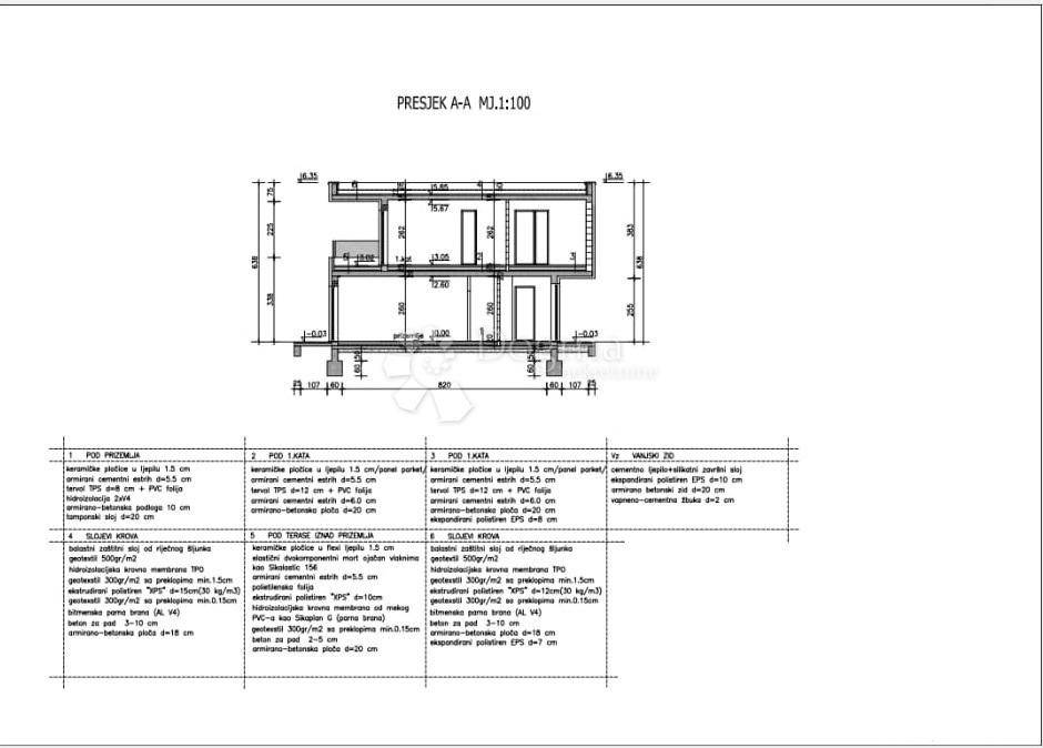 The heating system includes underfloor heating powered by a heat pump, a fireplace for a cozy atmosphere, and air conditioning units for cooling during the summer. The villa is equipped with electric blinds, an alarm system, and thermostats in every room for precise temperature control. It is built with brick, and the windows are made of aluminum and PVC.