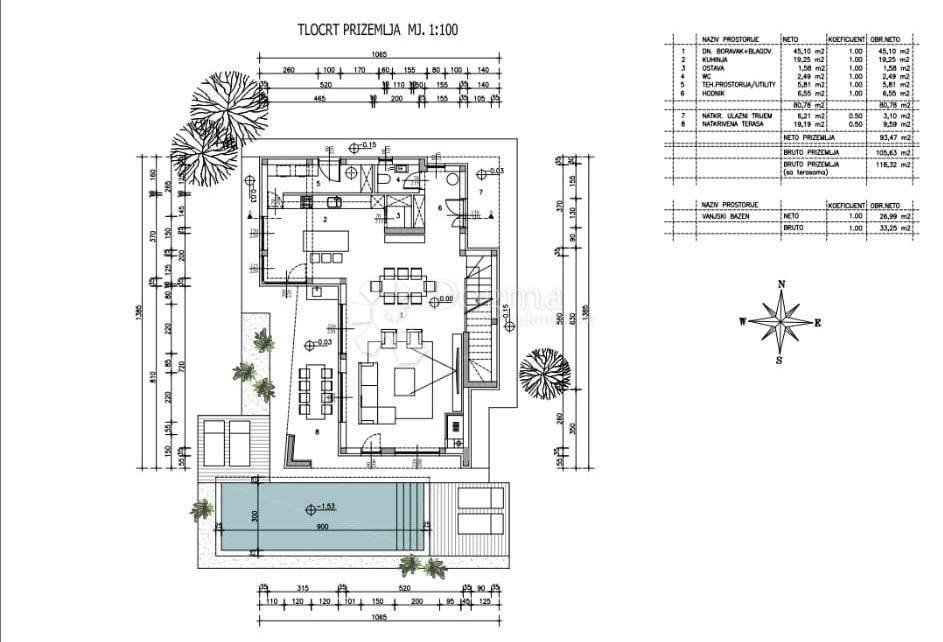 The exterior of the villa features a 27 m pool with a sunbathing area, perfect for enjoying the warm summer days. The villa is being sold on a turnkey basis, meaning it will be fully completed (without furniture), allowing you to design the interior according to your preferences. Two parking spaces are included for additional convenience.