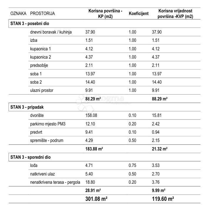 Total gross area: 301.08 m, net 119.60 m.