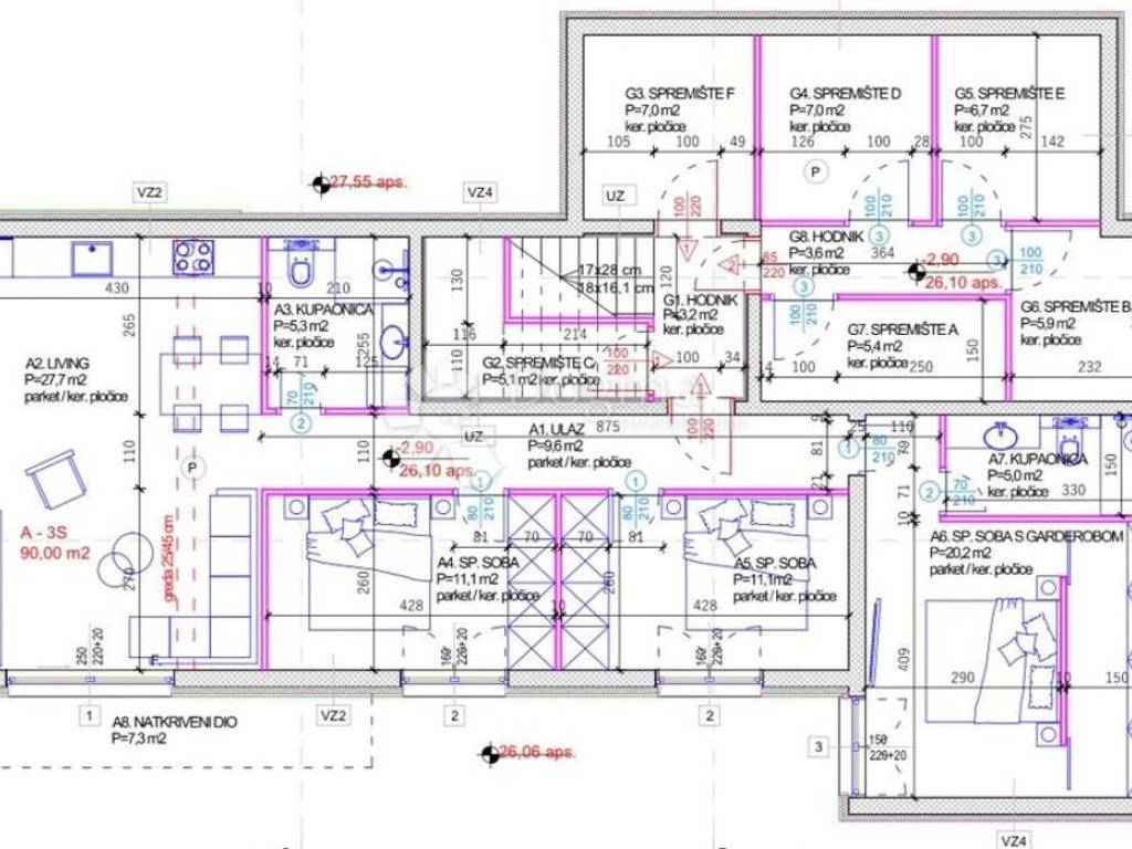 The building will be constructed to the highest modern building standards, considering earthquake resistance, noise protection, and fire safety. Special attention will be given to energy efficiency, including a 10 cm stone wool thermal facade and appropriate PVC joinery with electric, thermally insulated aluminum shutters. All apartments will be equipped exclusively with products and materials from renowned global manufacturers. Cooling for all living and bedroom spaces in the units will be provided by a Mitsubishi inverter system. Electric underfloor heating with a heating cable in the screed will be installed in the living room and dining area, while bathrooms will have electric underfloor heating with a heating mat. Additionally, the apartments will feature three-layer oak parquet flooring, Italian ceramic tiles, and bathroom fixtures and fittings from brands such as Hansgrohe and Geberit. Depending on the time of purchase, i.e., the stage of construction, there is a possibility of choosing the type of flooring.