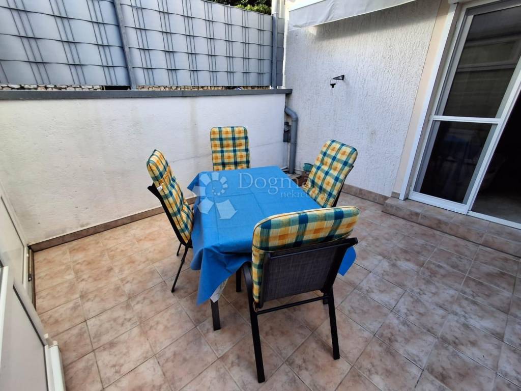 The apartment spans 48 m and features a spacious bedroom, a modern kitchen, and a cozy living room with access to a terrace that serves as a true oasis for enjoyment. The terrace is equipped with an electric awning, providing pleasant shade, and is large enough for family gatherings and warm summer evenings. A special highlight is the winter storage room with PVC windows, which is fully furnished with two beds and functions as an additional bedroomperfect for guests or as extra relaxation space.