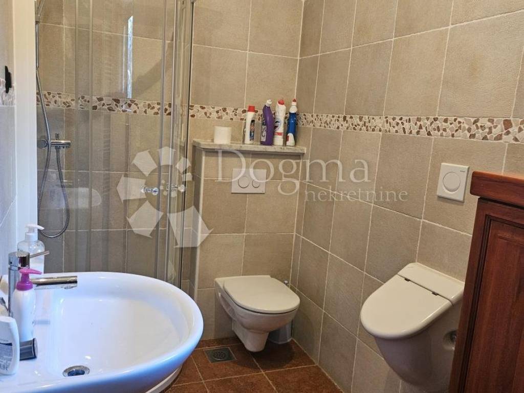 The exterior joinery, renewed two years ago, is made of larch with mosquito nets on all windows, while a remote-controlled fence provides additional privacy. On the spacious yard there is a recently built uncovered terrace, ideal for sunny days, as well as a covered terrace with a barbecue, an outdoor kitchen and a large table for gatherings, which exudes charm and functionality.