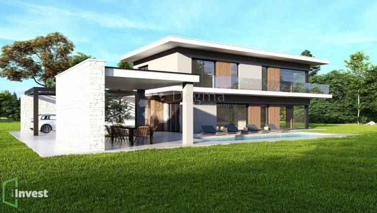 Between Pazin and Žminj, a new building with a total square footage of 203.32 m is for sale, located on a plot of land of 887 m.