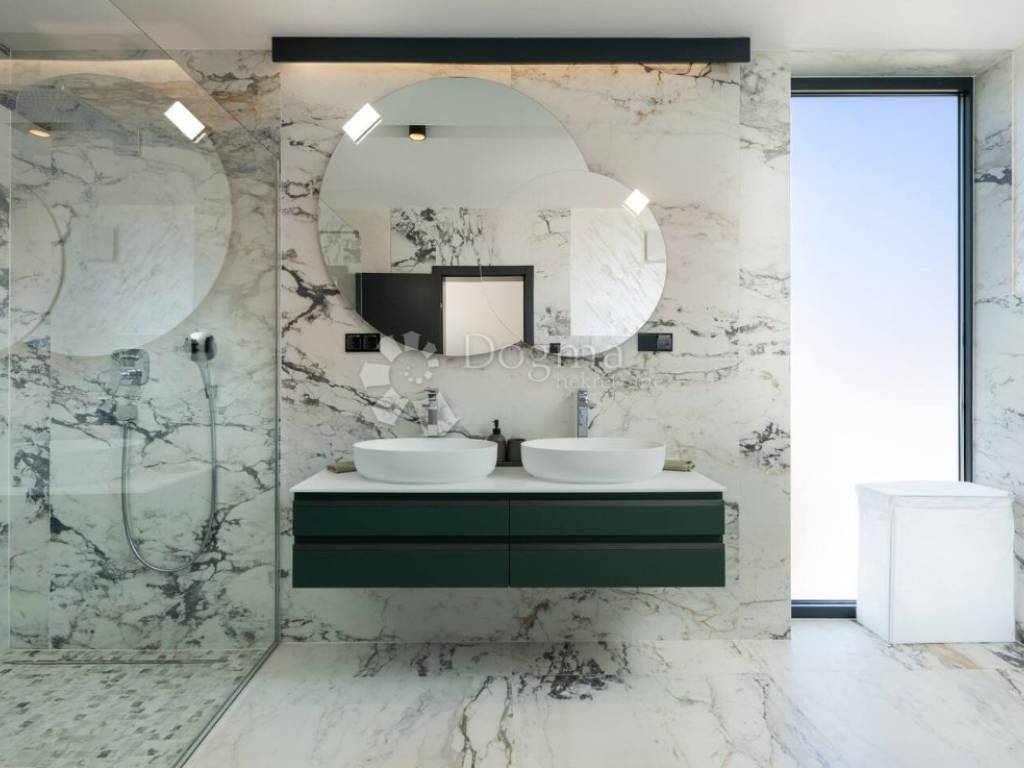 The advantage of this house is certainly the solar panels, i.e. its own 15kW power plant, which is used for water, heating. Each bathroom has two sinks and ventilation, glass fences on the outdoor terraces with led lamps.