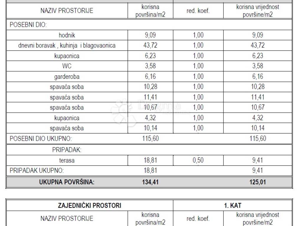 The apartment is located in the first building, on the first floor, with a total usable area of 134.41 m2, and an accounting area of 125.81 m2. This spacious apartment offers comfortable living space and consists of the following rooms:
