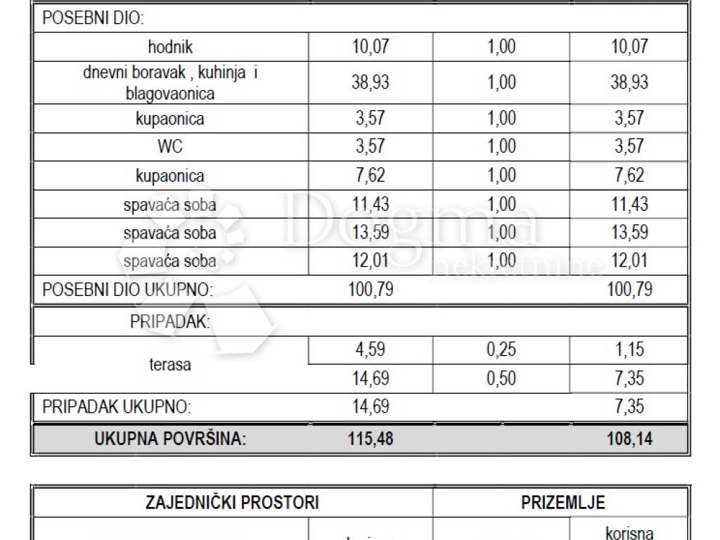 The apartment is located in the third building, on the ground floor, with a total usable area of 115.48 m2, and an accounting area of 108.14 m2. This spacious apartment offers comfortable living space and consists of the following rooms: