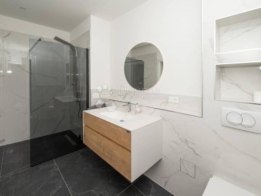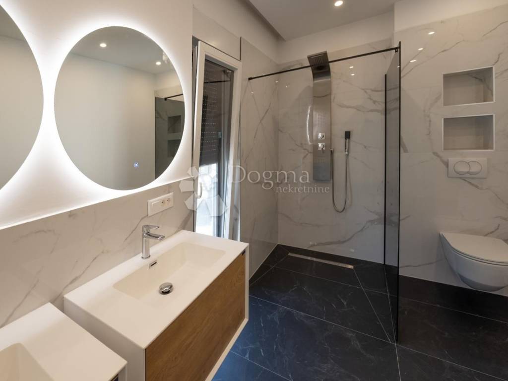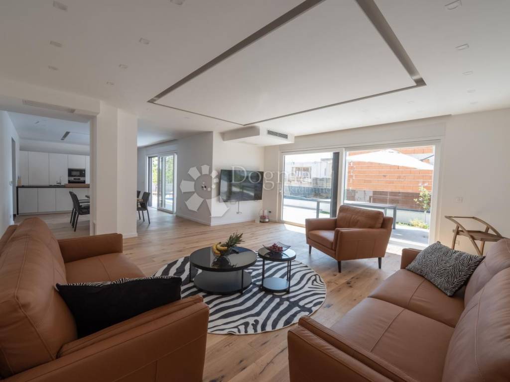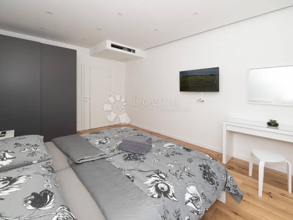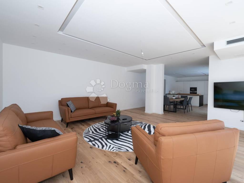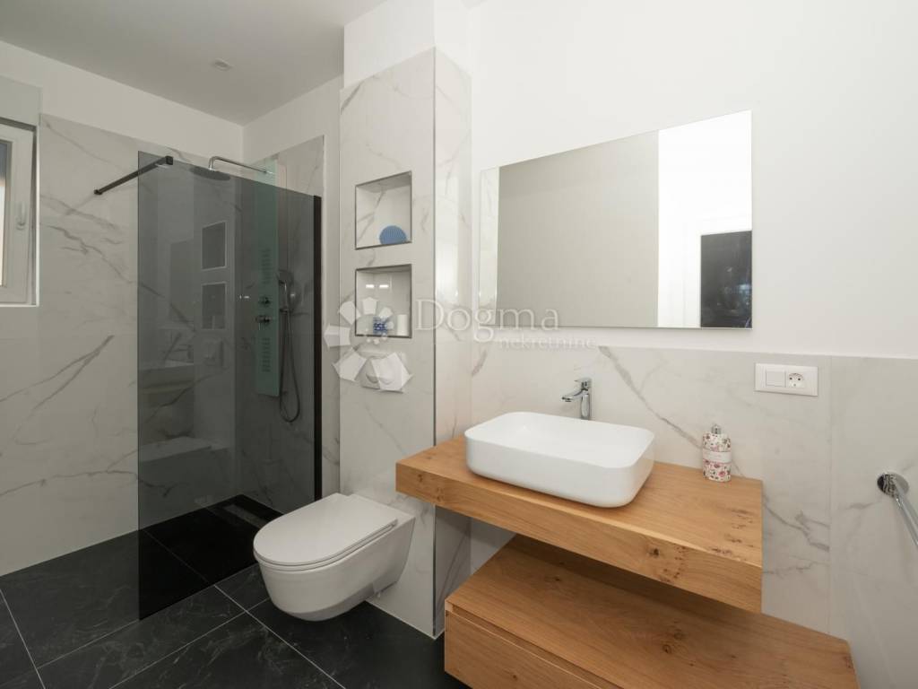 For sale is a luxury villa in Trogir, one of the most beautiful Mediterranean cities, ideal for people looking for high standards and comfort in a peaceful environment. This imposing villa, located on a plot of 510 m2, offers a view of the sea and stands out for its modern design and high-quality materials.