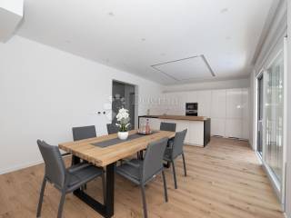 The villa covers a total area of 340 m2, spread over three floors. In the basement there is a spacious garage for two cars, equipped with a sauna, a jacuzzi, a social area and a separate toilet. This is the perfect space for relaxation and fun.