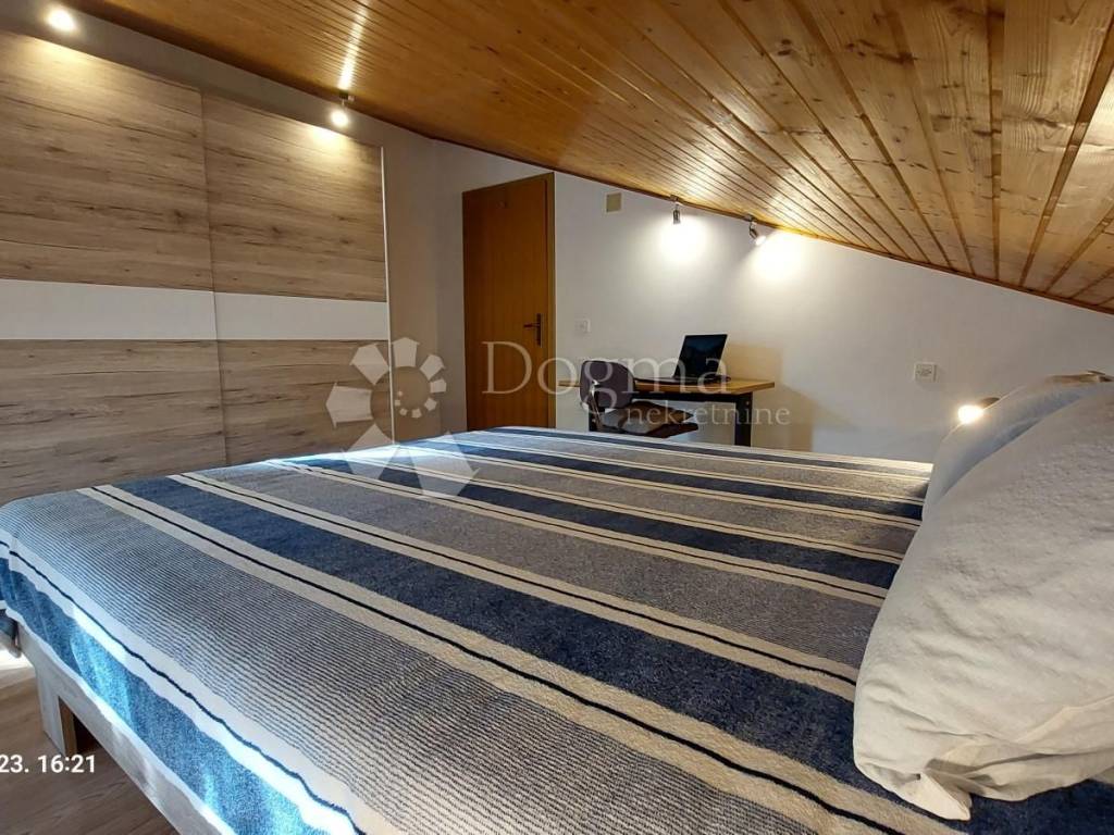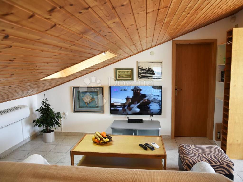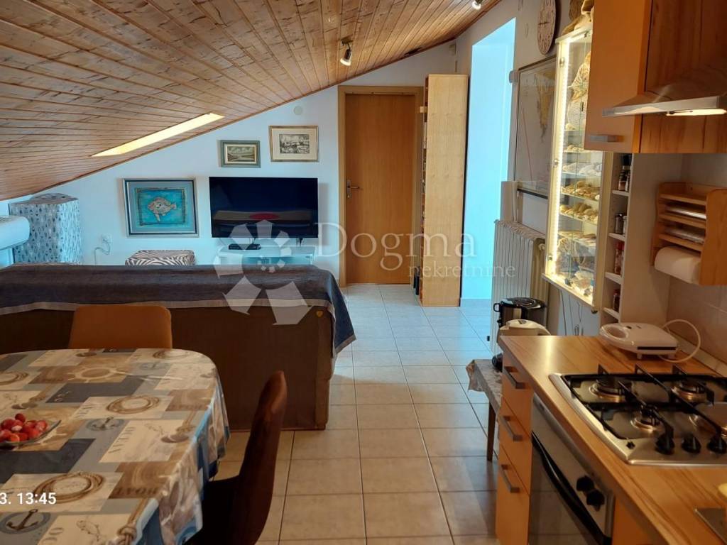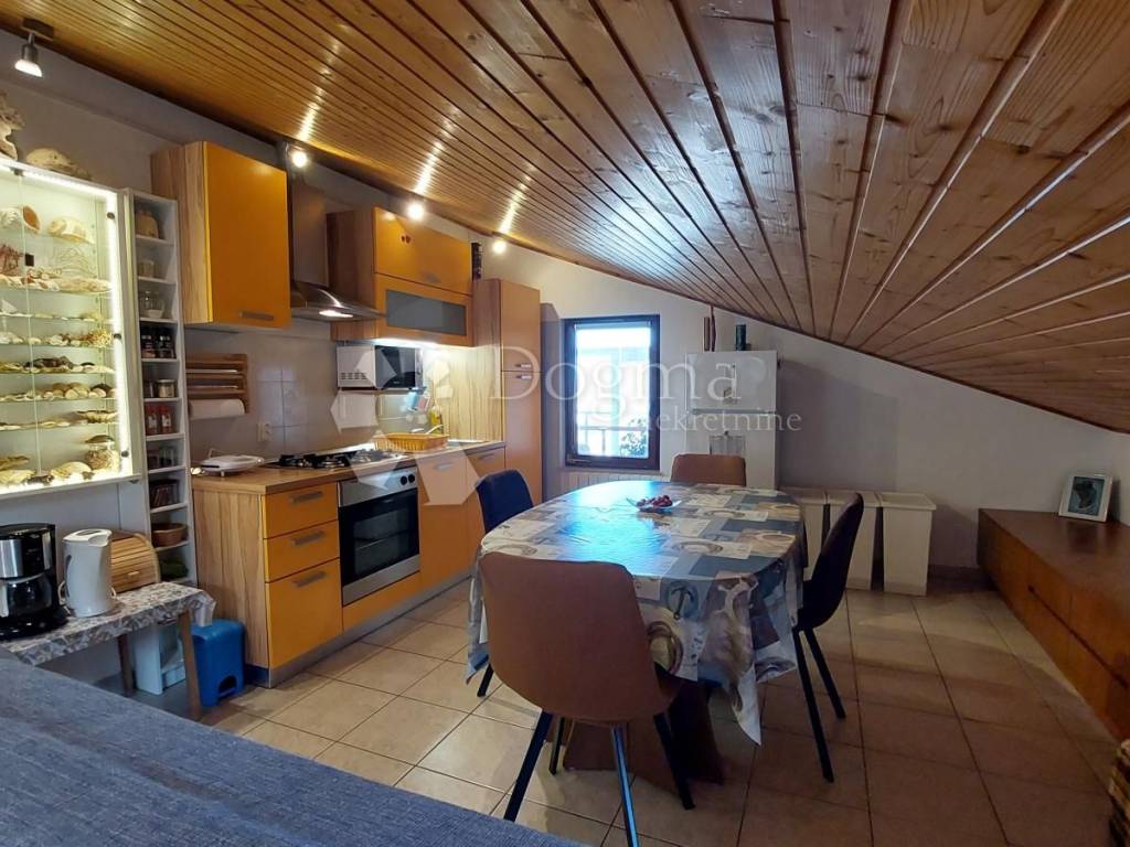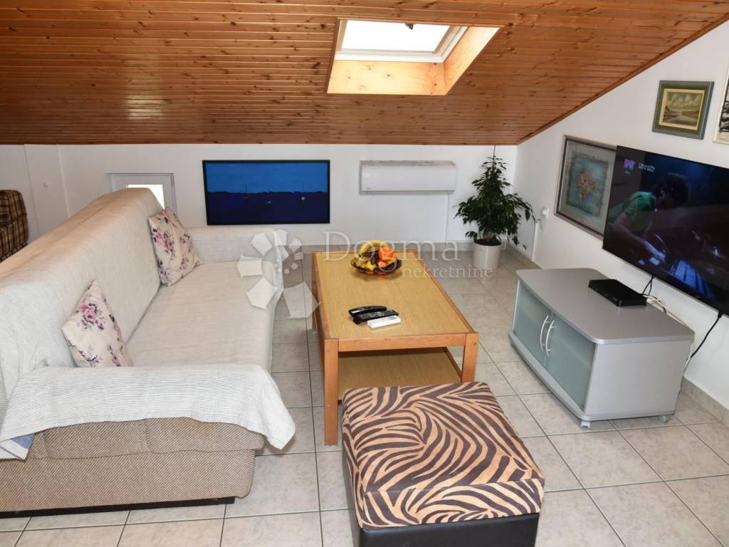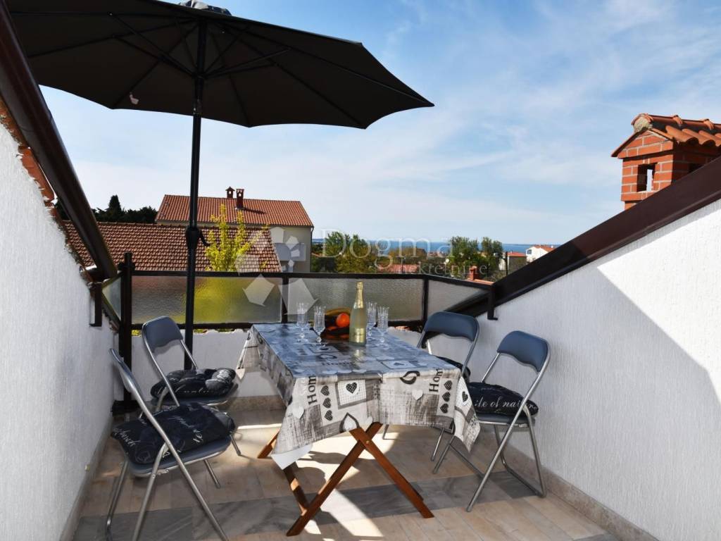 In Štinjan, in a quiet village in the suburbs of Pula, an apartment is for sale with a total net reduced area of 100.67 m2, actual area of 132 m. It is located on the 1st floor and attic of the house. It also shone with a beautiful view from the gallery, open terrace and balcony of the Brijuni archipelago and a large part of Istria.
