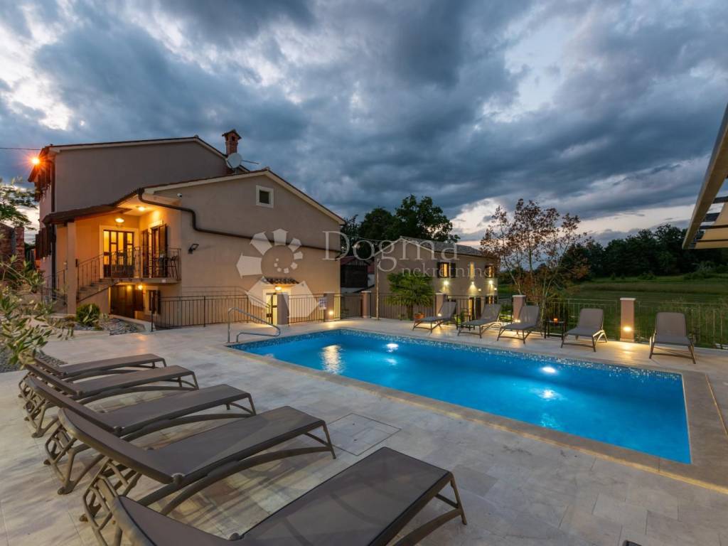 A charming vacation home is located in the heart of Istria, a perfect place for a vacation. Surrounded by greenery, on