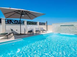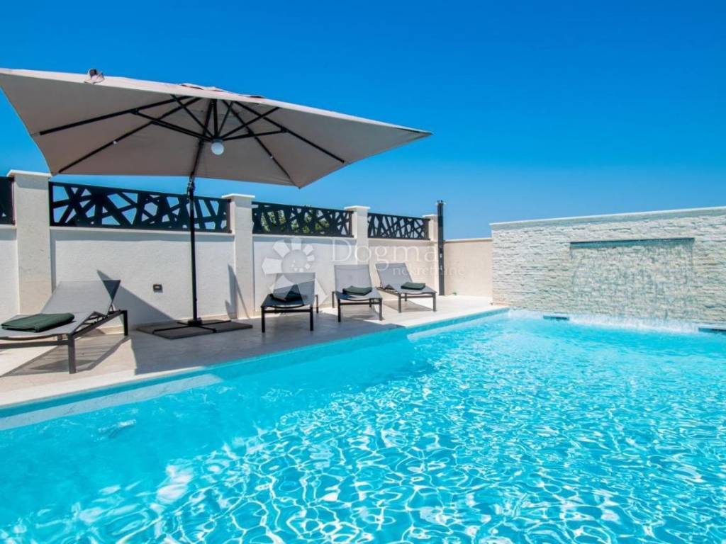 The house has a total of three floors - basement, ground floor, 1st floor (S + F + 1). There are four apartments inside the building. The heated swimming pool of 32 m2, barbecue, outdoor shower and toilet are located on the open area.