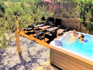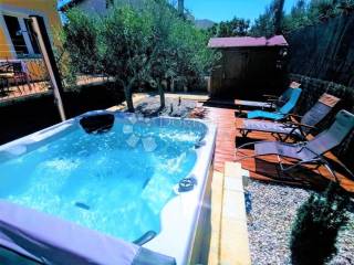The smaller house has an area of 48 m2 and consists of a living room, kitchen and dining room, bathroom, bedroom on the ground floor and another smaller one in the gallery. As far as the equipment is concerned, this one also has air conditioning, thermal insulation, and PVC carpentry as an indispensable part, and also in both houses the emphasis is on small details that make these beauties contemporary and modern houses. The front part of the house has a beautiful row of trees, which together with the stone paving of the yard, Mediterranean plants and two parking spaces in combination with the location create an idyllic and peaceful environment where all you need to do is relax and enjoy. In the back part of the house, hidden from view, in addition to the stone grill, garden house, sun deck, there is also a hydromassage tub, which is an indispensable accessory for every seasoned hedonist.