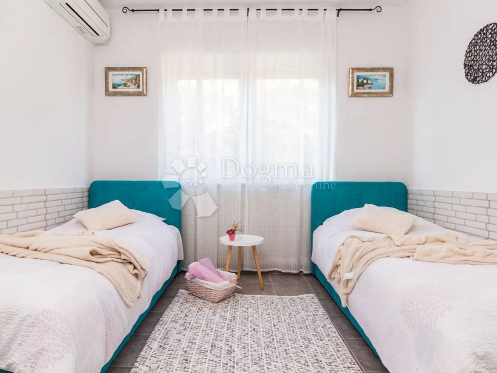 The larger house with a total area of 143 m2 consists of a living room, kitchen with dining room, three bedrooms, two bathrooms and a terrace. The attic of the house, with a minor intervention, can become another floor and become an additional living space, which creates additional value for this property. The house is fully air-conditioned, and the thermal insulation of the house and PVC joinery reduce the need for heating and cooling to the lowest possible level. It is important to emphasize that the house has a video surveillance system that can be accessed from a remote location. The house is regularly occupied during the summer season and is a preferred destination for guests who are happy to return to it.
