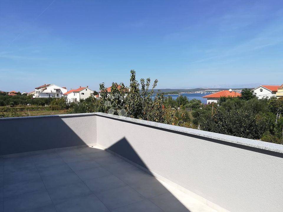 The ground floor features a hallway, bathroom, living room with kitchen, and a covered terrace of 24 m with a partial sea view.