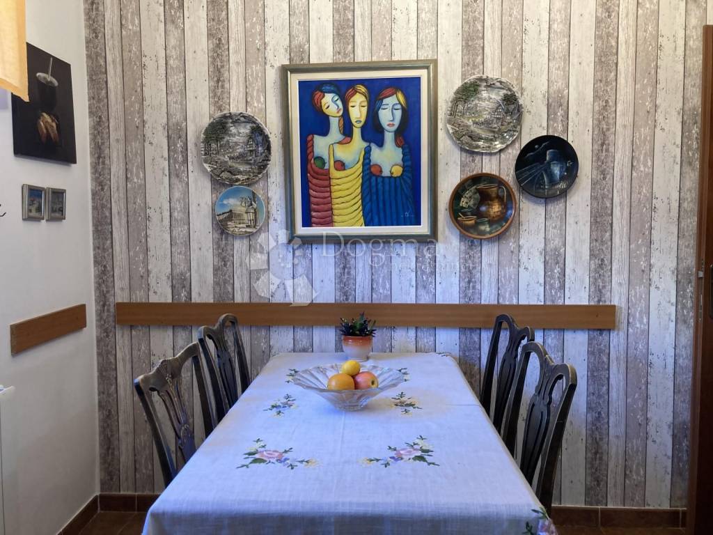 In the basement there is an office space with toilet and gallery. The office space has its own entrance from the main street and behind the office on the opposite side there is an entrance to the residential part which consists of an entrance hall, storage room and stairs leading to the 1st floor. On the 1st floor there is a spacious kitchen with dining area and a spacious living room. Stairs lead to the 2nd floor where there are 2 bedrooms + one smaller children's bedroom and a bathroom. From the 2 bedrooms you can go out to the loggia which has a beautiful view of the sea and the surrounding landscape. Stairs lead to the 3rd floor where there is one large bedroom and two smaller ones with a beautiful view of the sea and the surrounding landscape. There is also another bathroom. Stairs lead to the attic on the 4th floor, which houses 2 rooms that currently serve as a dressing room and laundry room and can also be used as guest rooms since they have skylights.