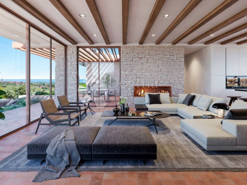 The concept of the house is modern Istrian architecture with large glass openings that will be connected and enriched with Istrian elements - drywall, wooden beams on the ceiling in the living room, beach around the pool and the pool will be paved with large Italian ceramics, and living room and bedrooms will be will be covered with oak parquet.
