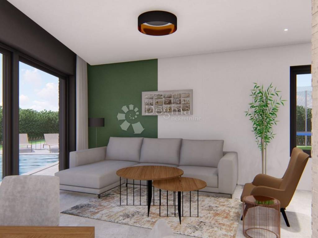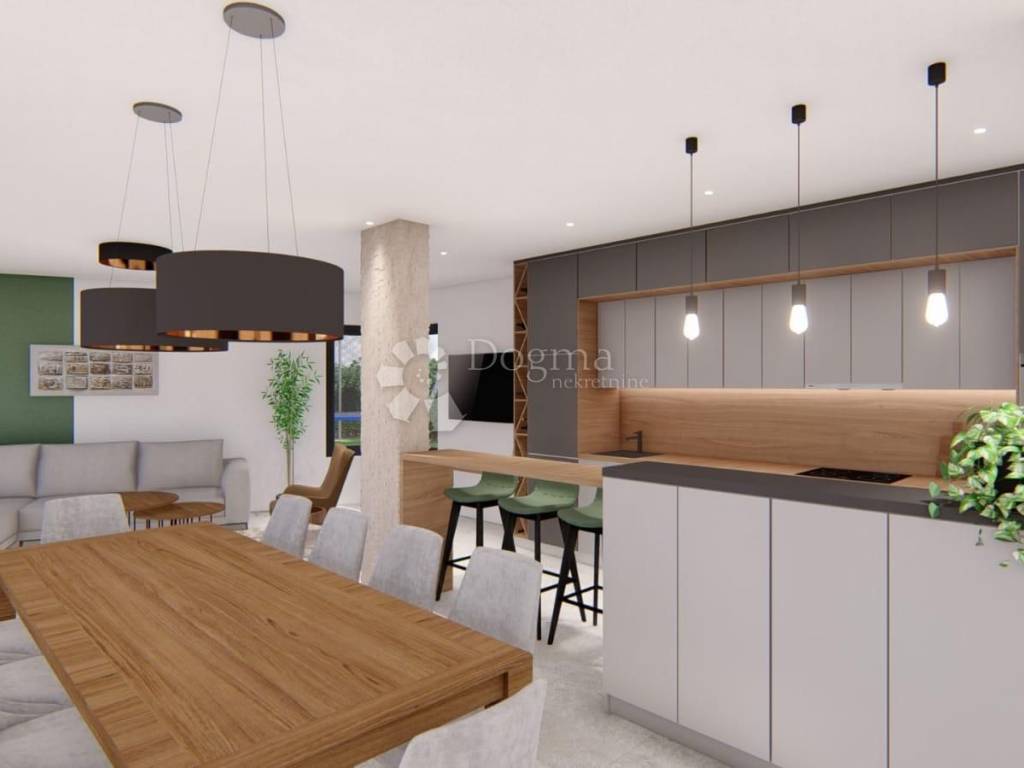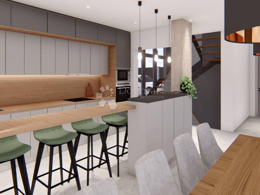 The building consists of ground floor and first floor. The ground floor has a living room, kitchen, 2 bedrooms and 2 bathrooms. The kitchen and living room have an exit and a view of the pool. Stairs of high quality wood and glass lead to the first floor.
