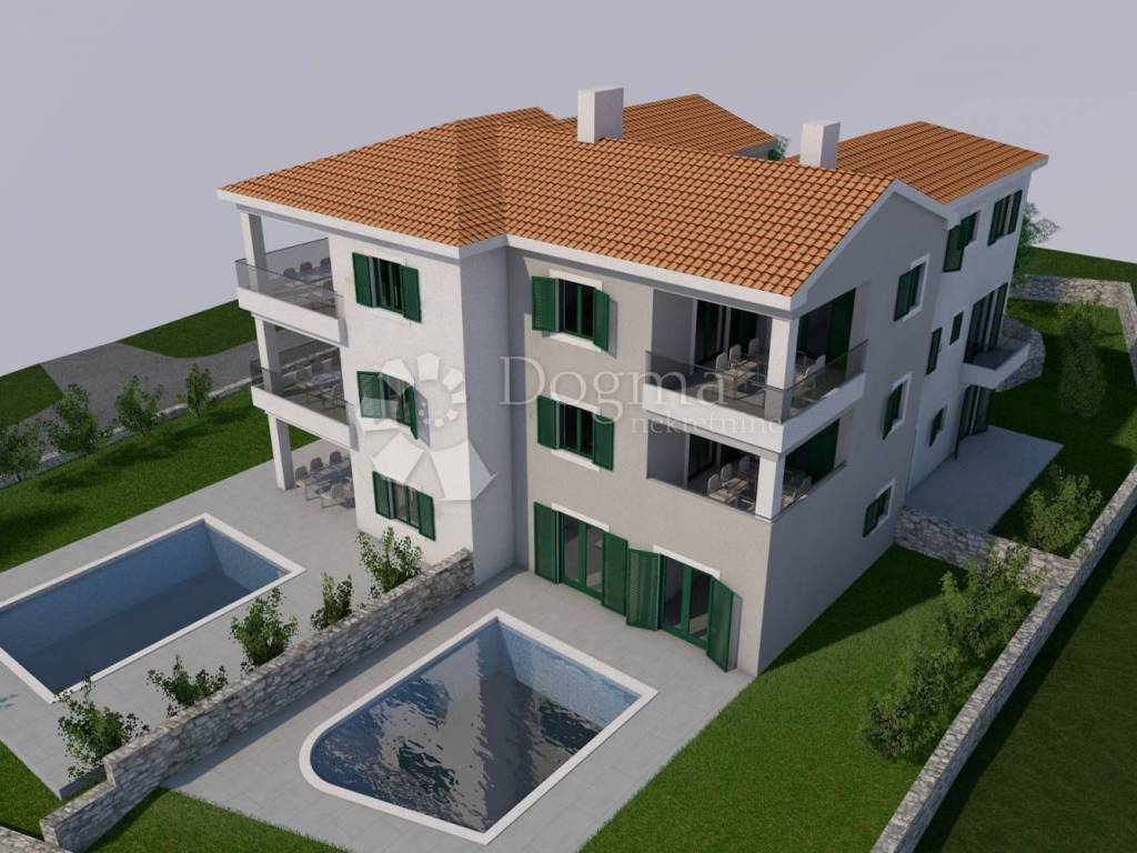 Malinska, wider Center, high-quality NEW BUILDING with 5 views with swimming pools, only 200 from the sea and all amenities!