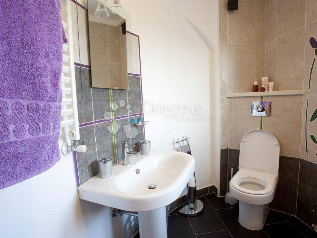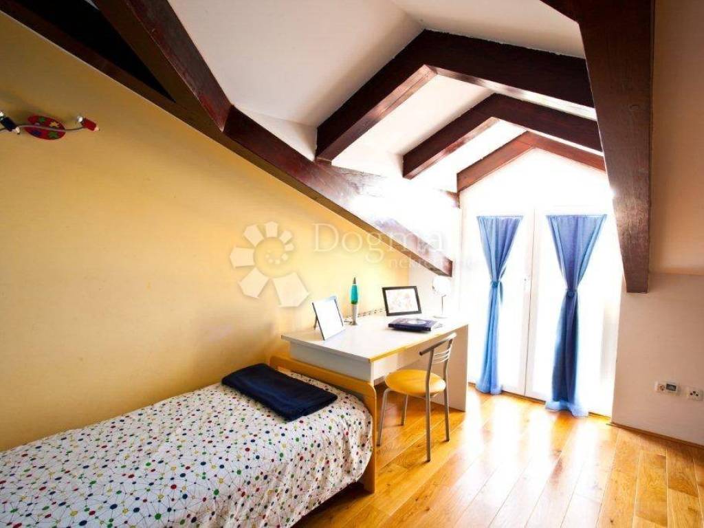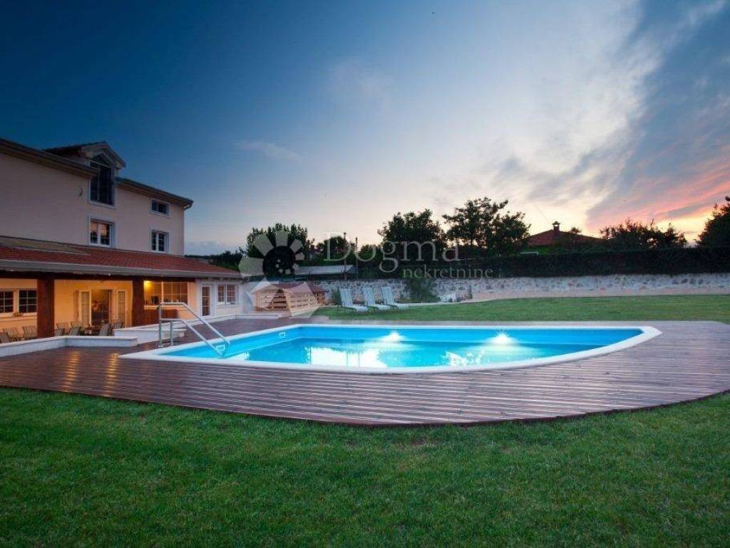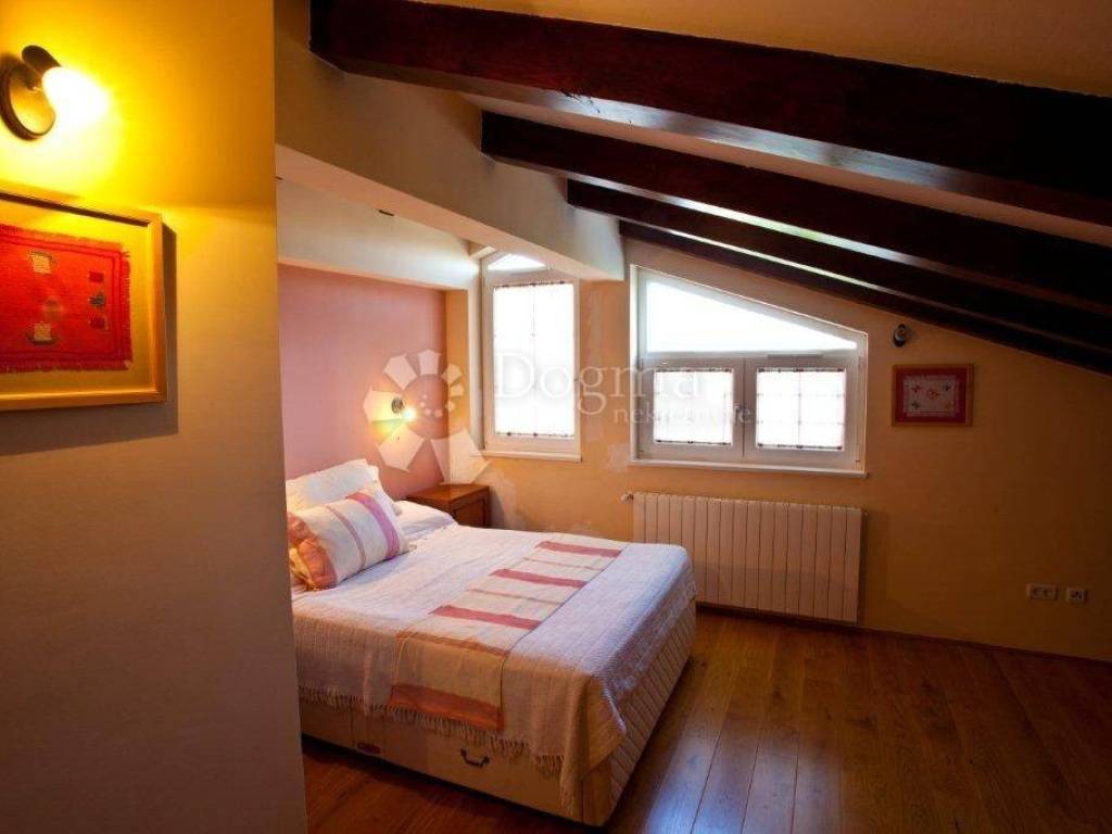 On the beautiful coast of Istria (Croatia), just below the Lim Channel, is the most romantic place in the Mediterranean! The city of Rovinj is the right destination for all of you who crave the sentimental atmosphere of times that have passed irrevocably. In a small village near this pearl of the Adriatic is located this luxury villa that provides all the comfort and privacy. The villa is located on a large and fenced plot where the central place is occupied by a 40 m2 swimming pool with a beach made of wooden panels. In the yard there is a sauna, a tavern with barbecue, bread oven and bathroom, utility room that serves as storage and covered parking for several vehicles. The villa spreads over three floors, the ground floor, first floor and attic. On the ground floor there is a hallway leading to a large living room with access to a covered terrace, dining room and modern kitchen with pantry, study and laundry. On the ground floor of the villa there is a separate apartment of approximately 30 m2 which consists of a bedroom, bathroom and kitchen.