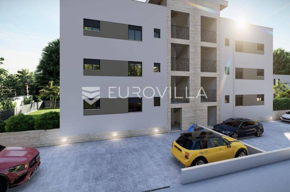 Kaštela Lukšić novogradnja trosoban stan na 1. katu od 77,74 m2 i vanjskim parkingom za automobil.Sastoji se od: komfornog dnevnoga boravka otvorenog tipa s kuhinjom i blagovaonicom tri spavaće sobe (jedna master soba i dvije manje jednokrevetne), dvije kupaonice, hodnika te prostrane logge naslonjenog na stan s južne strane.Zatvorena stambena površina 69,95 m2, dnevni boravak s blagovaonom i kuhinjom 27,66 m2, tri spavaće sobe, te logge od 7,8 m2 spojena na dnevni boravak na jugu. Ukupna neto obračunska površina stana od 73,85 m2.Uz stan obvezna kupnja jednog vanjskog nenatkrivenog mjesta po cijeni od 8.500 EUR.Visoko kvalitetna izrada i korištena oprema, energetska učinkovitost zadovoljava visoke standarde.Sve prostorije su klimatizirane, podno grijanje u kupaonicama, PVC vanjski zatvori s troslojnim staklima, podizno klizna stijenka na balkonima, električne rolete u cijelom stanu, termo fasada na objektu, protuprovalna i protupožarna ulazna vrata.Predviđeni završetak radova 12/2025.g.Pozicioniran u centru mjesta na nekoliko stotina metara od mora,Grad Kaštela smješten između grada Splita i Trogira te je jedno je od najboljih područja za život isto tako za godišnji odmor. Brojne plaže i duga šetnica s brojnim ugostiteljskim sadržajima, Zračna luka Split udaljena svega 5 km, dvije marine za brodove i izvrsna pristupačna brza cesta Kaštela čine izvrsnom mjestom za život.Za sve dodatne informacije stojim vam na raspolaganju.