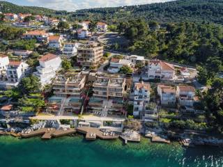 In a quiet part of Okrug Donji, just a few steps from the crystal clear sea, a modern three bedroom apartment is for sale that exudes airiness and contemporary style. The total area has 112,93 m², with an additional 16,10 m² of outdoor space that provides the perfect place to enjoy the sun and the sea view.   The apartment is located on the second floor of a small residential building with an elevator and a total of seven units, which guarantees privacy and peace. The interior layout includes three bedrooms, two bathrooms, a hallway, anteroom and a living area connected to a balcony. The space is designed to provide maximum functionality and a sense of openness.   The facility is built to high standards, using quality materials and finishes. Each room has air conditioner, security doors are installed, and future owners are given the option of decorating the interior with the professional help of a designer.   The shared facilities of the building add additional value to the residence – a roof terrace with a lounge area and a view of the sea, a fitness area, saunas and a swimming pool. One garage parking space is included in the price, while there is the option of purchasing an additional garage parking space.   Due to its position in the second row to the sea, proximity to Trogir, Split and the airport, which is only 13 kilometers away, this property is the perfect choice for those looking for a combination of comfort, luxury and a Mediterranean lifestyle.