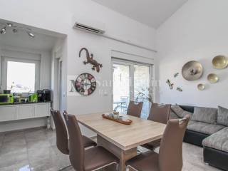 The apartment consists of two floors. On the lower floor there is an entrance hall, bathroom, storage room, bright living room connected to the kitchen and dining room and a covered terrace ideal for relaxation. On the same floor there is also a bedroom with a practical gallery that can be used as an additional room, work space or play area.
