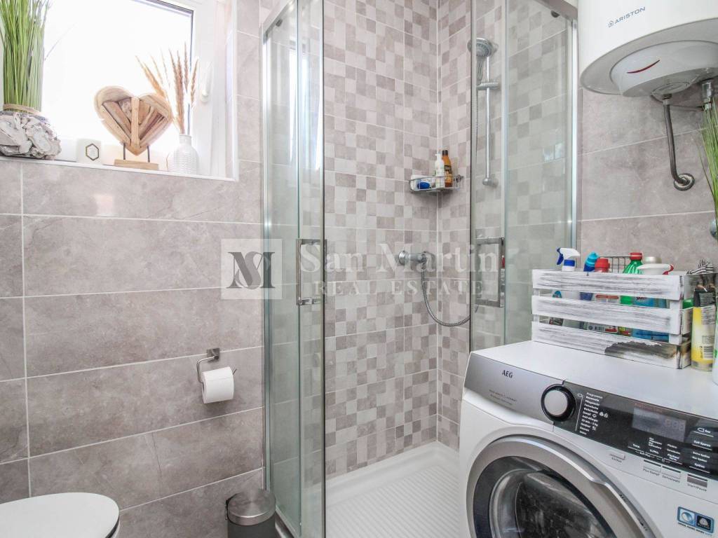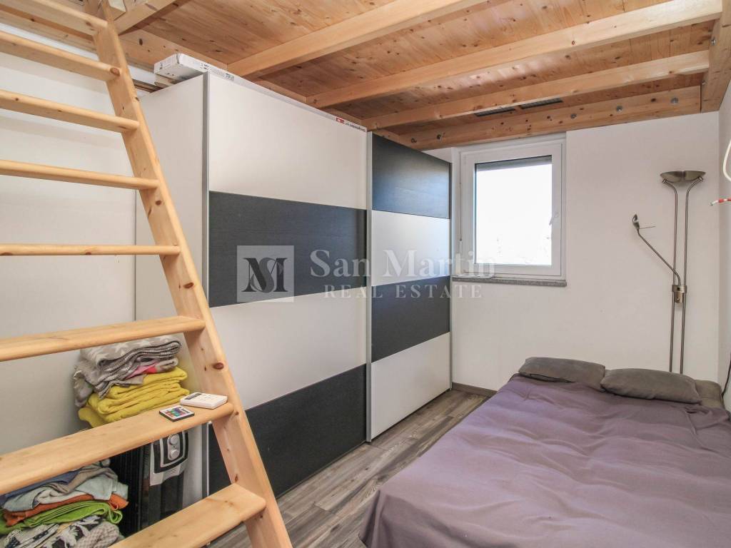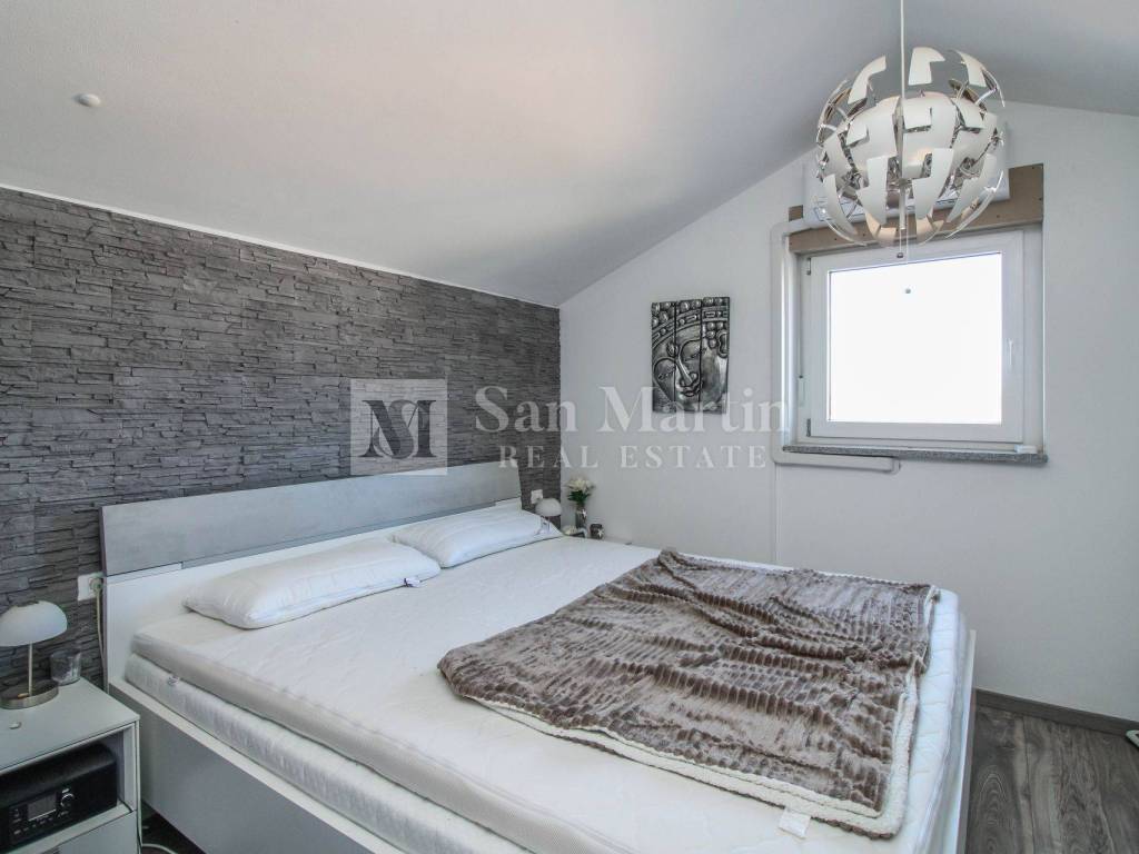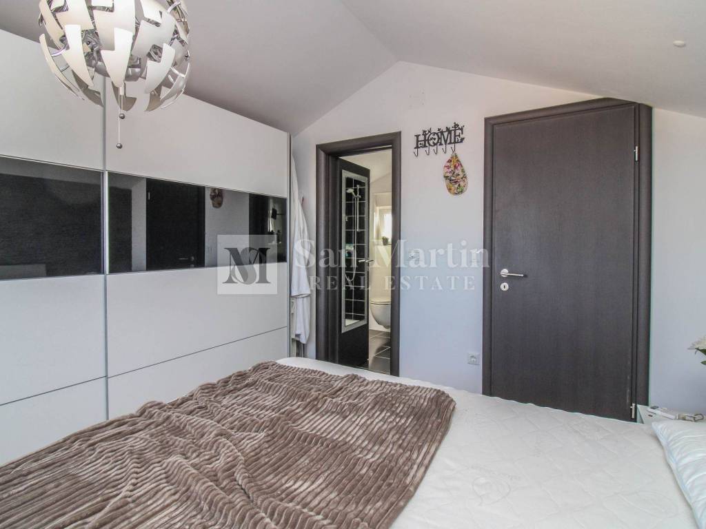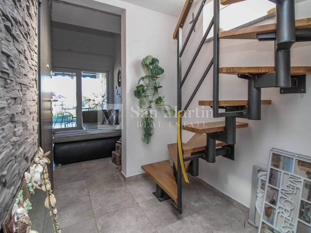 On the upper floor there is a master bedroom with its own bathroom, which makes the apartment particularly functional for family life or guests.