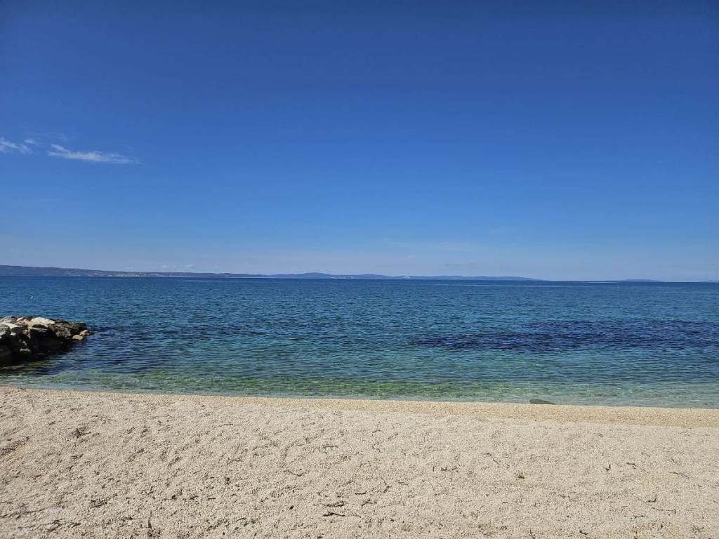 Zemljištu ukupne površine 585 m2, udaljeno svega 150 m od mora, s predivnim pogledom na more. Posjeduje pravomoćnu građevinsku dozvolu i odobren projekt za gradnju luksuzne ville sa bazenom. Prema projektu vila je katnosti: prizemlje i kat povezani unutranjim stubištem, sa ravnim krovom, ukupne građevinske bruto površine 217 m2 + bazen 32 m2, strojarnica i ostava ukupne površine 14 m2. Po odobrenom projektu  prizemlje ville sadržavati će: prostrani dnevni boravak od 47 m2 sa kuhinjom i blagavaonicom, te nadalje ostavu, spavaću sobu, kupaonicu, gostinjski toilet, praonicu, hodnik, ulazni pretprostor te natkrivenu terasu od 21 m2 sa koje se pruža neodoljivi pogled na more. Na prvom katu su predviđene: tri prostrane spavaće sobe (18-20 m2), svaka sa svojom kupaonicom (5 m2). Dvije od spavaćih soba imaju izlaz na lođu i terasu (7-8 m2), master soba ima i prostor za garderobu od 7,5 m2.  Spoj luksuznog i modernog stila u blizini plaže i sa neodoljivim pogledom na more.Slike i 3D vizualizacije služe samo u promotivne svrhe i mogu se razlikovati od stvarne situacije nekretnine.Udaljenost od mora : 150 m, od centra naselja 4 min autom, Hotela Meridian Lav: 5 min, centra Splita 15 km, u blizini svih potrebnih sadržaja za život. Trenutno su na zemljištu postavljeni građevinski temelji, svi potrebni priključci također te zemljište posjeduje uredan pristupni put.