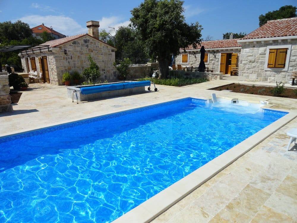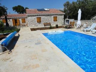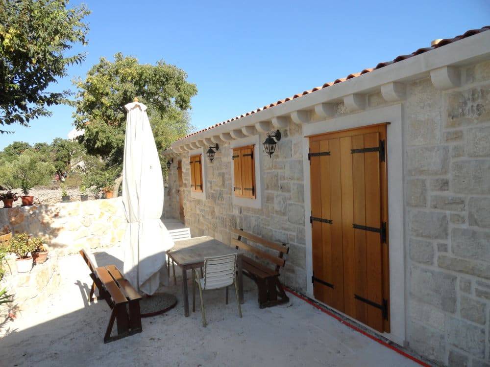 Rogoznica, two stone houses built and furnished in the authentic Dalmatian style. The houses are located in a settlement over 400 years old. The main house has a gross construction area of 164 m2, ground floor, with a gable roof, consisting of: living room and kitchen, three bedrooms, two bathrooms, hallway and storage room. The second house has a gross construction area of 99 m2, gable roof, consisting of: ground floor and basement, consisting of: living room and kitchen, bathroom and bedroom. There is a storage room of 37 m2 in the basement. The total land area is 550 m2, the garden is landscaped and has several parking spaces and a concrete massage pool 8 x 4 m, garden is planted with Mediterranean plants. Distance from the center of Rogoznica 1 km (3 min by car), from the beach: 850 m (12 min walk), from the international airport Split: 33 km (36 min by car). What makes these properties special is their privacy and authenticity.