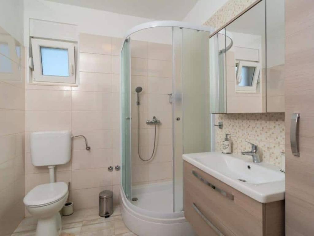 This rare and beautiful property is located right by the sea in a quiet bay not far from the village of Marina. On a spacious plot of 1360 m2 there are two residential buildings, the main and auxiliary.The main building is a beautifully decorated 50 m2 single-storey house with two bedrooms, a bathroom, a living room, a kitchen and a dining room. The house opens onto a beautiful covered terrace with a dining area and a stone-paved barbecue.The auxiliary building of 25 m2 is a small studio apartment with a kitchen, living room, bedroom and bathroom.On this spacious, regular-shaped plot there is also enough space to park several cars. The garden is beautifully landscaped and planted with typical Mediterranean plants. A stone-paved path on the plot leads directly to the coast and the sea.The property is being sold fully furnished and equipped.Since this part of the village still doesn't have electricity and water, this property has a large cistern that supplies it with water, and solar panels are installed on the roof to supply electricity. A septic tank is used for wastewater disposal.This property is ideal for those seeking maximum privacy, peace and a stay in untouched nature. Although it is located in a more isolated area, in nearby villages you can find amenities such as shops, cafes, restaurants, pharmacies..It is only 10 km from the village Marina, 23 km from Trogir city center, and 28 km from Split Airport.