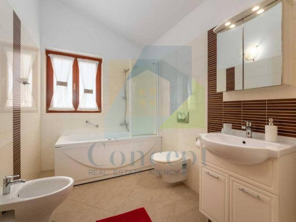 The house is equipped with gas central heating, as well as underfloor heating on the ground floor and in the bathrooms, air conditioning, and a fireplace in the living room.