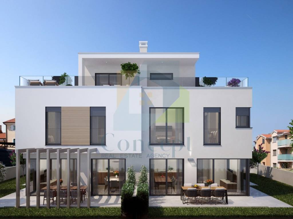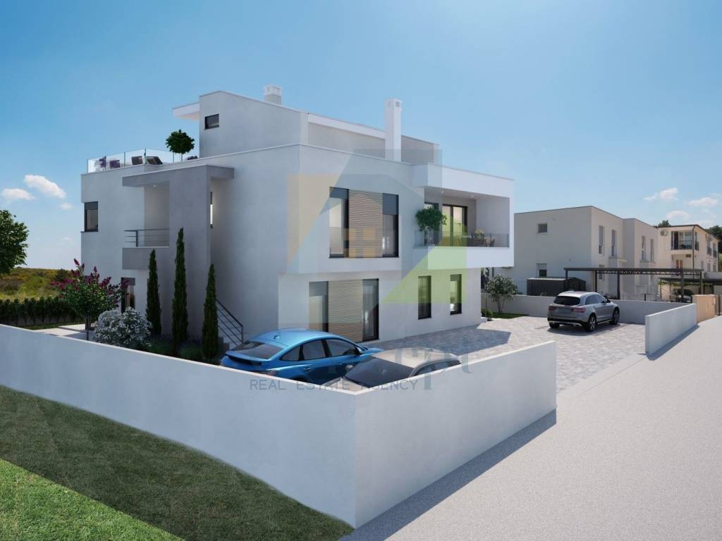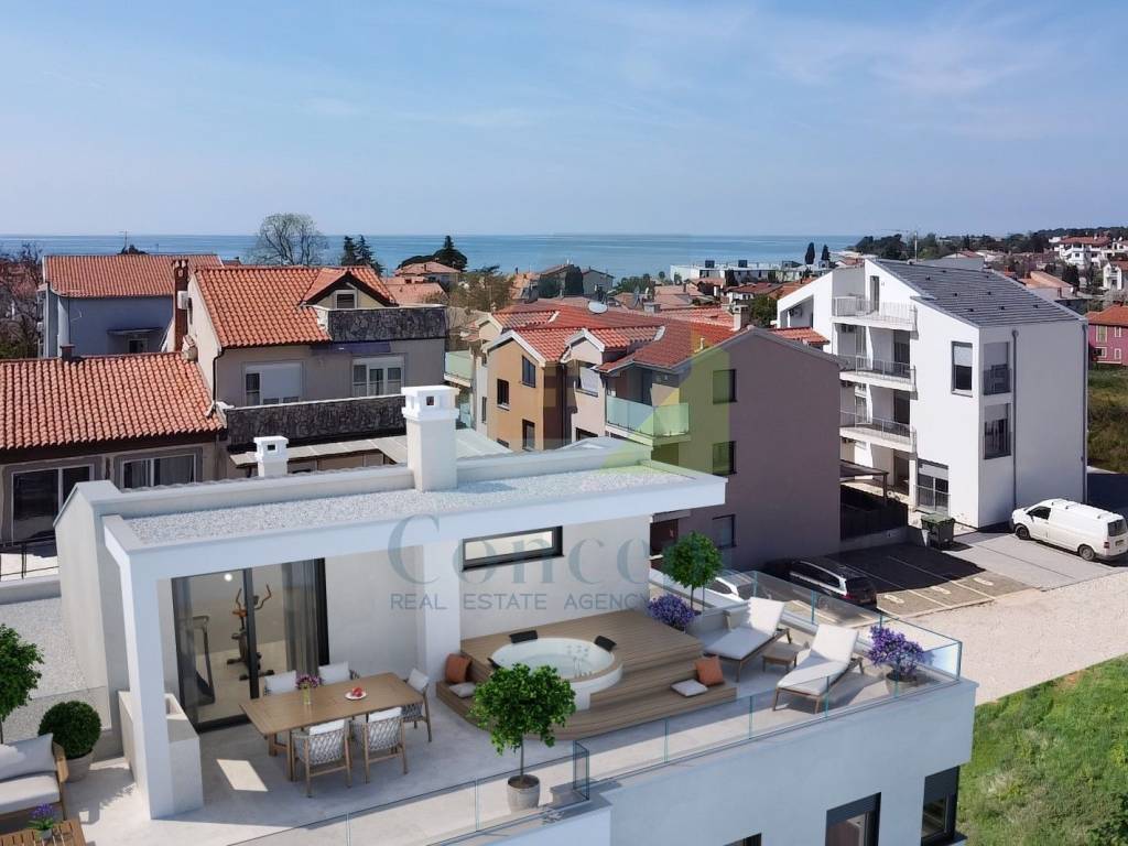 For sale is a two-story apartment with a rooftop terrace in an excellent location, just 300 meters from the sea, in a quiet area near Umag. The apartment has a total area of 100.91 m and is situated in a newer building with a modern design, offering a functional layout distributed over two levels, along with an additional rooftop terrace.
