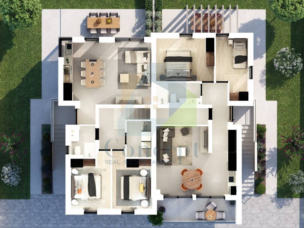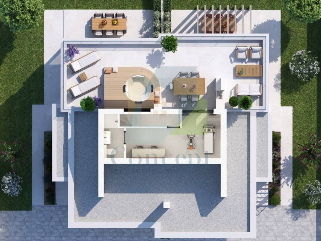 The rooftop terrace, measuring approximately 55 m, of which about 20 m is covered, offers space for an outdoor summer kitchen and dining area. From the terrace, there are views of nature and the sea, and there is provision for the installation of solar panels.