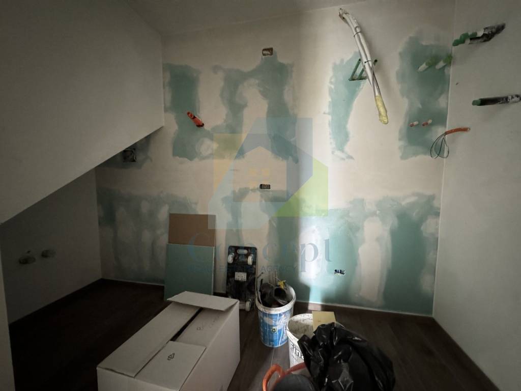 An internal staircase leads to the upper level, where there is another room suitable for various purposes, such as an office or an additional bedroom. This floor also features another bathroom, and the room opens onto the rooftop terrace.