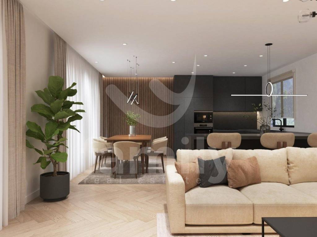 It is within the municipality of Medulin, more precisely in Premantura, that this extremely modern and high-quality new building by a proven investor with a total of 6 residential units is located. This luxurious penthouse is located on the second floor of the building with a total area of 130 m2. The mentioned property consists of a very spacious and lighted open space concept living room combined with a high-quality kitchen and dining area, comfortable bedrooms, storage room, one bathroom, one guest toilet as well as a spacious terrace. The heating and cooling system is planned to be regulated by 2 air conditioning units, one in the bedroom and one unit is planned in the living room. Electric underfloor heating will also be installed in the kitchen, living room and bathroom. The apartment will be equipped with three-layer PVC joinery in anthracite color, lift-sliding doors, electric aluminum shutters and aluminum entrance doors. The floors will be covered with high-quality parquet and ceramics with the possibility of choosing according to your own preferences. The apartment will also have 2 parking spaces.