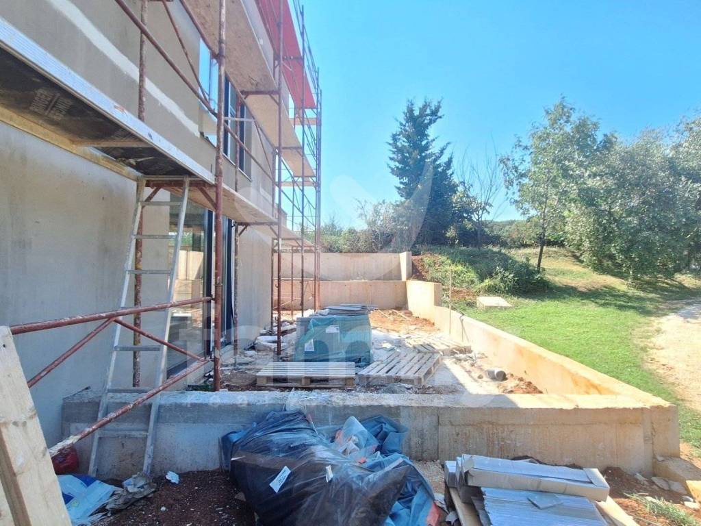 The aforementioned modern and high-quality small residential building by a proven investor with a total of 8 residential units is located in the attractive location of Banjole. The aforementioned apartment of 60.49 m2 is located on the ground floor and consists of an entrance hall equipped with a burglar-proof entrance door, one bright and comfortable bedroom with access to a terrace and garden, a spacious living room connected to an open space concept kitchen and access to a terrace and garden of 6.51 m2, as well as a bathroom equipped with a Geberit built-in cistern, a walk-in shower, installed installations for a washing machine, an Ariston boiler and a ventilation system. The floors throughout the apartment are covered with high-quality ceramics, and the bedroom has Sherborne wood-imitation ceramics. The heating and cooling system is regulated by two Mitsubishi air conditioning units, one unit installed in the bedroom and one in the living room, and electric underfloor heating has also been implemented throughout the building with separate Wi-Fi thermostats in each room. PVC joinery with triple-glazed anthracite glass and aluminum roller shutters with electric lifts have been installed, and an anthracite-colored aluminum garden fence will also be installed. The building is equipped with an 8 cm thick thermal facade on the ground floor, with 2 cm thick Travertino classico stone also installed, which certainly contributes to excellent thermal and sound insulation. The apartment has one uncovered parking space as well as one shared toilet located in the hallway of the building, which will be co-owned by all co-tenants, and the work is scheduled to be completed by the end of 2025.