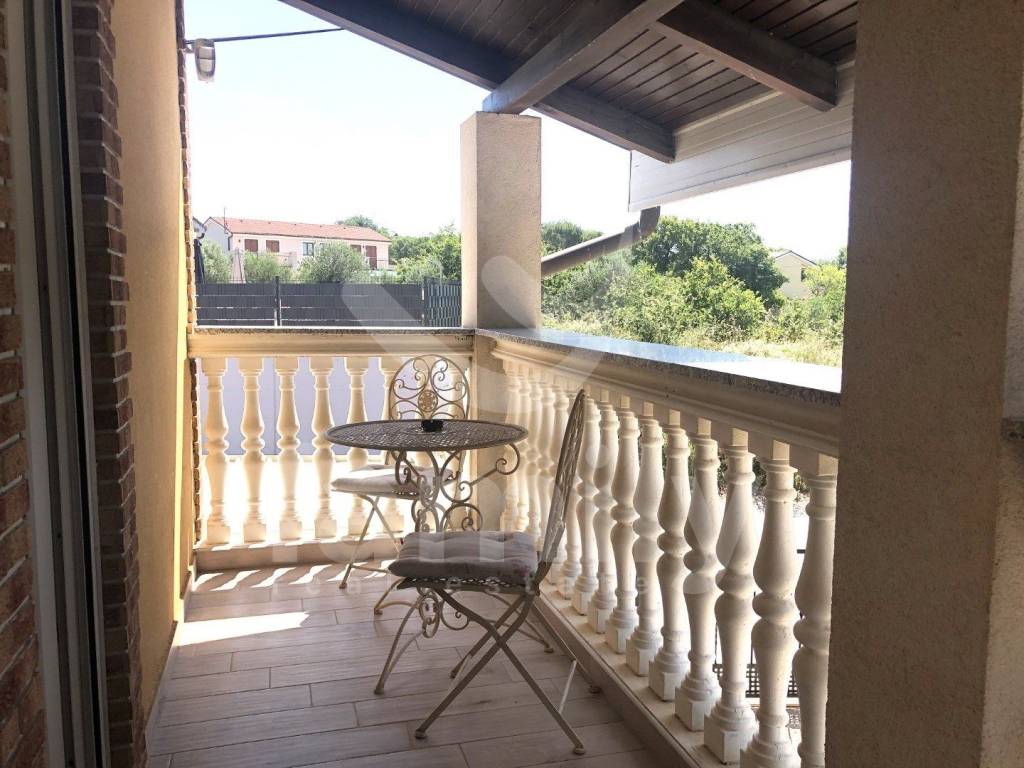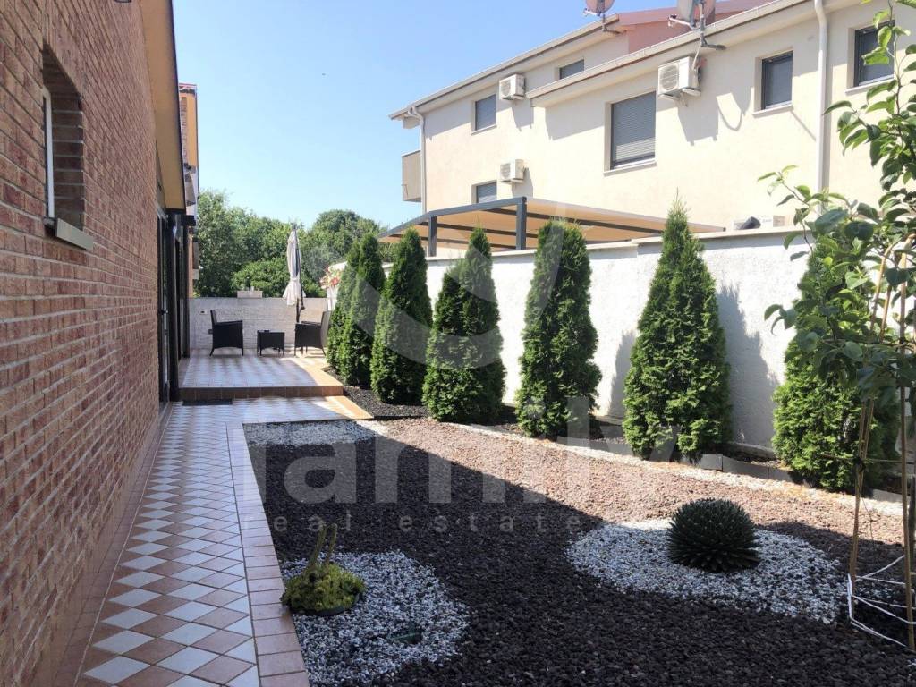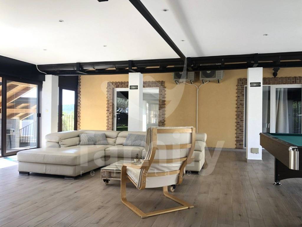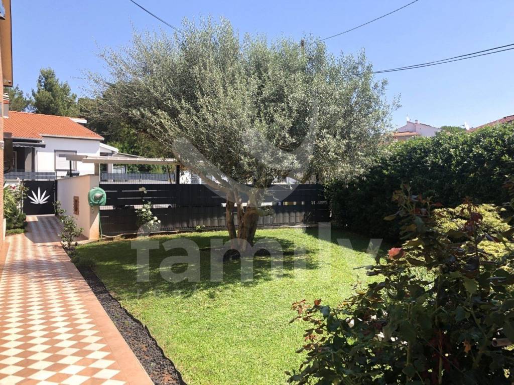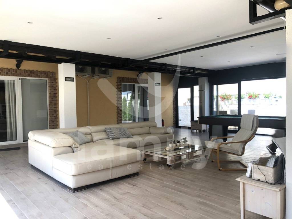 The first floor of the property consists of a covered dining area, the floors and sidewalks as well as the stairs are covered with stone. The central part of the house of 100 m2 is equipped with a large seating area, a TV and a billiard table. On the left and right sides from the central part there is an entrance to the apartments on the first floor. Two of the four apartments have been renovated and modernly equipped with new kitchen appliances with an induction hob and consist of a living room, bedrooms and a new bathroom. The entire building is equipped with air conditioning units in all rooms. Each apartment has high-quality laminate floors in the living and sleeping areas, the bathrooms are equipped with tiles and access to the stone-clad terraces that belong to the apartment. The villa is located on a very pleasant and well-lit plot, which means that its rooms are also sufficiently illuminated. It is rich in content and completely high-quality design. In front of the property there are three covered parking spaces, and at the back there are two parking spaces in the yard itself. The property is equipped with furniture, video surveillance, Wifi devices and a sewage connection.