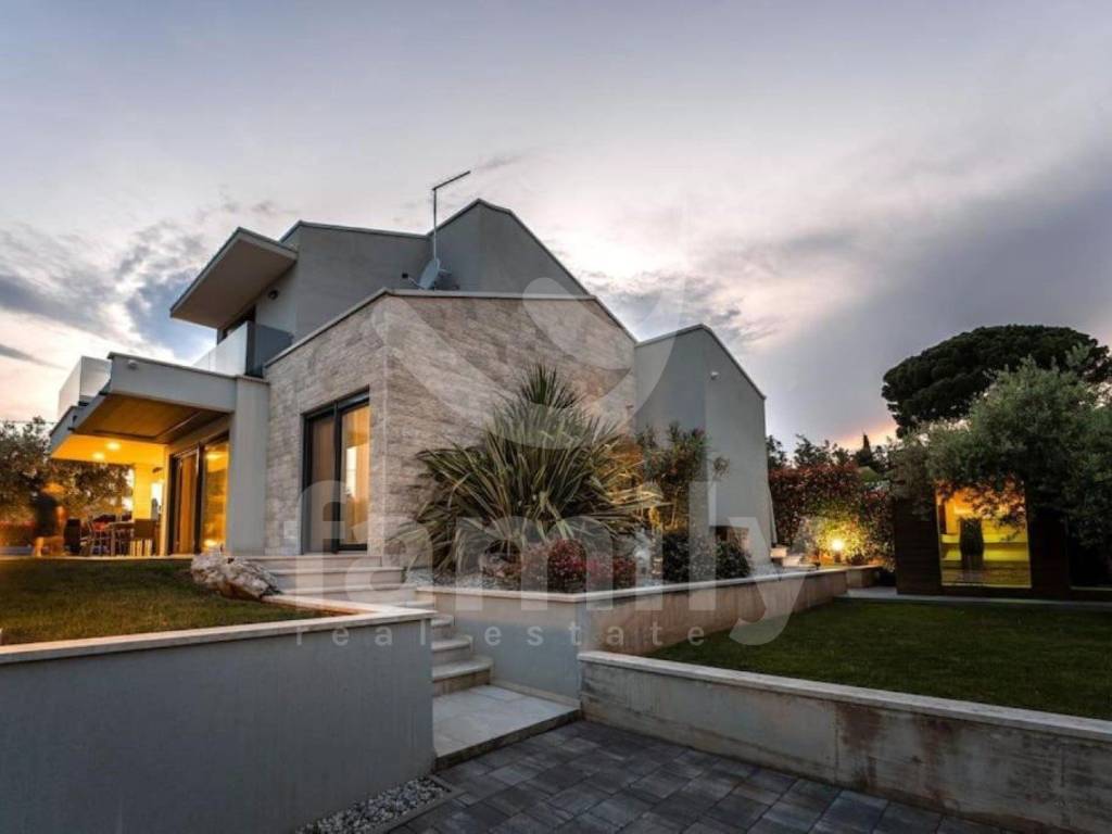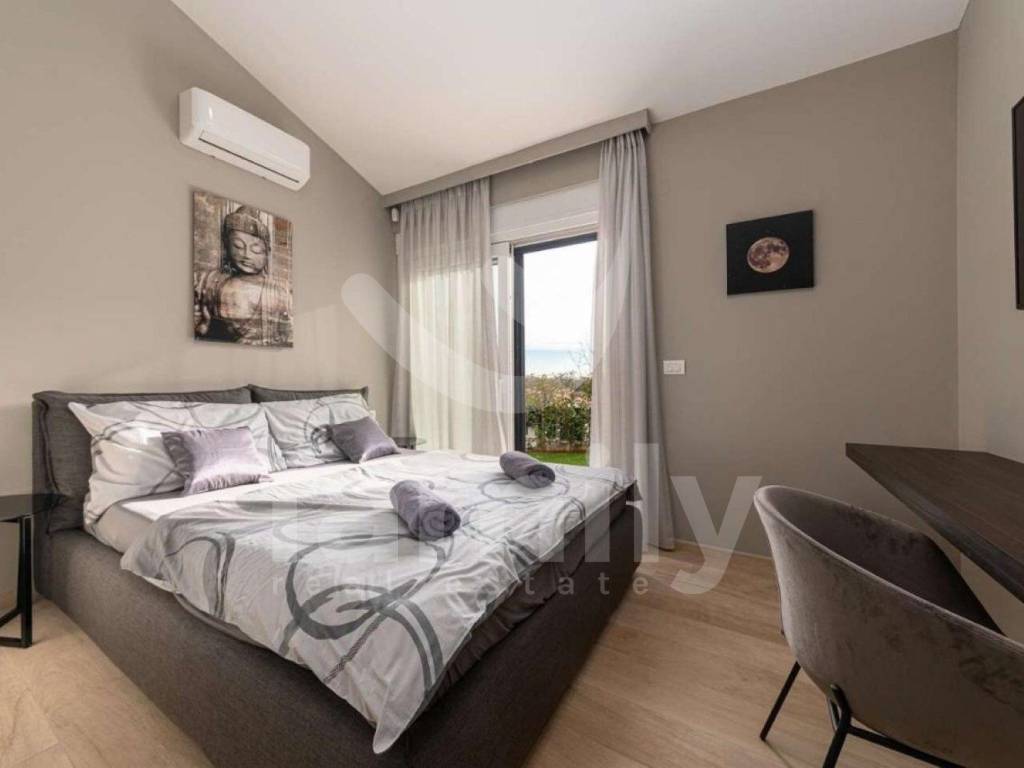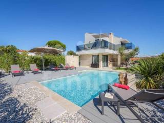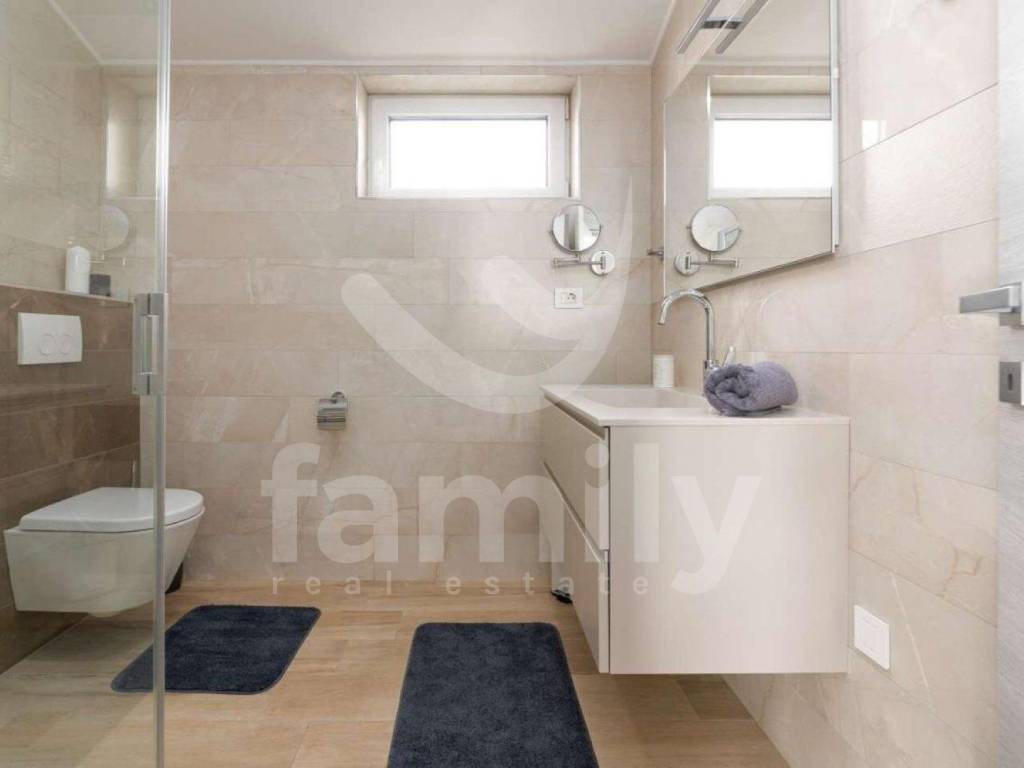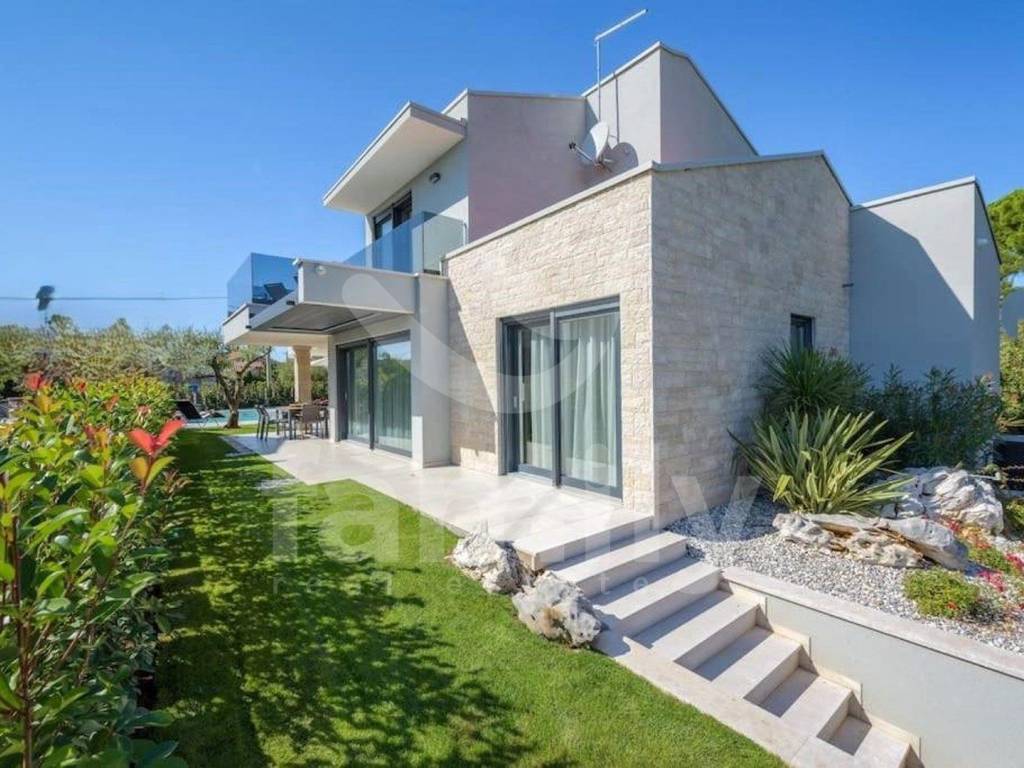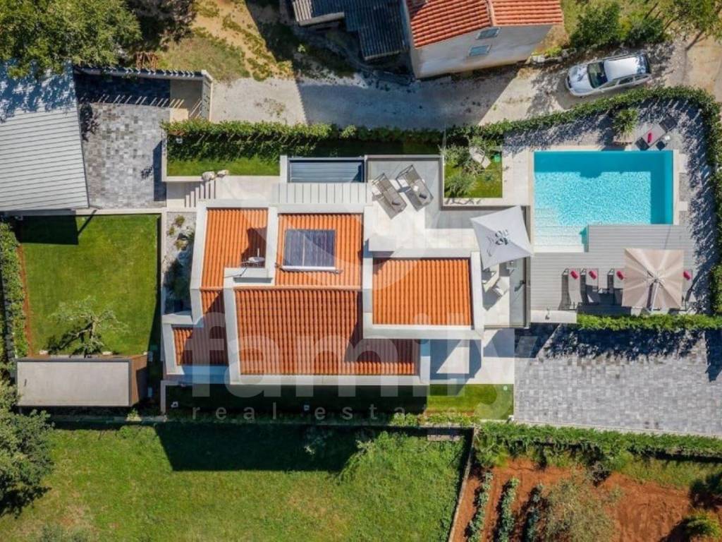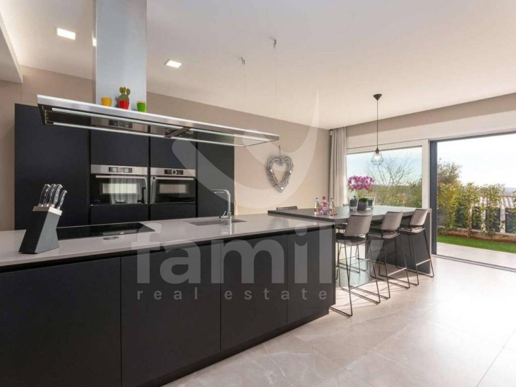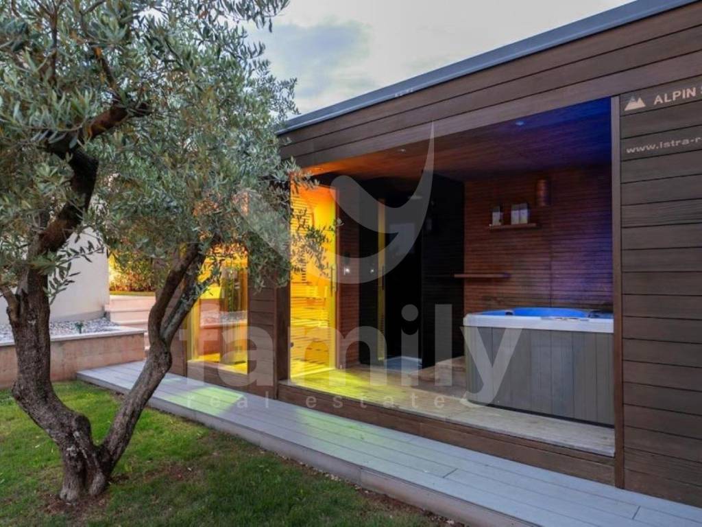 This beautiful, modern and high-quality villa of 220 m2 with a garden of 670 m2 is located right near Poreč. The property extends over two floors and on the ground floor there is a bright living room connected to a fully equipped kitchen and an open space island as well as access to a covered terrace where there is an outdoor kitchen covered with stone and equipped with a barbecue and a dining table for 6 people, a sundeck, a heated pool as well as a sauna, jacuzzi and an outdoor shower. The ground floor of the villa also consists of one bedroom with a bathroom, a guest toilet and a boiler room. A modern staircase leads to the second floor of the villa, which consists of two bright bedrooms, each with its own bathroom equipped with a walk-in shower and access to the terrace. The entire property has PVC double-glazed windows with roller shutters and mosquito nets, and the heating and cooling system is regulated by four air conditioning units, with the living room also featuring a fireplace with the option of wood heating, which certainly creates a warmer atmosphere. The entire property has underfloor heating with a heat pump and the floors are covered with high-quality stone. There are three covered parking spaces in the outdoor area, with additional space for 4 more vehicles in the uncovered area.