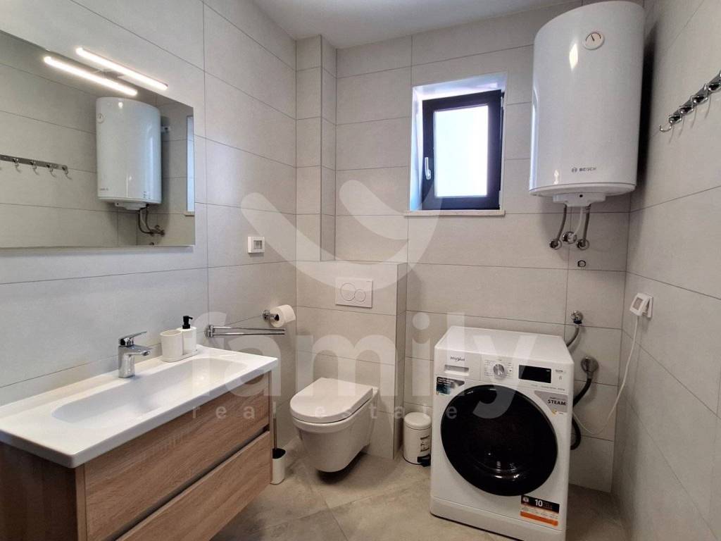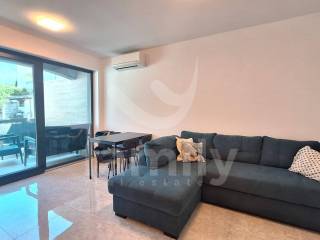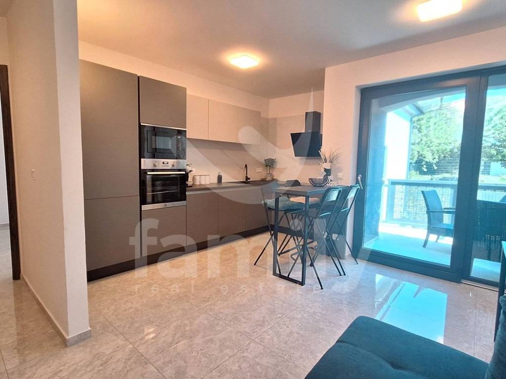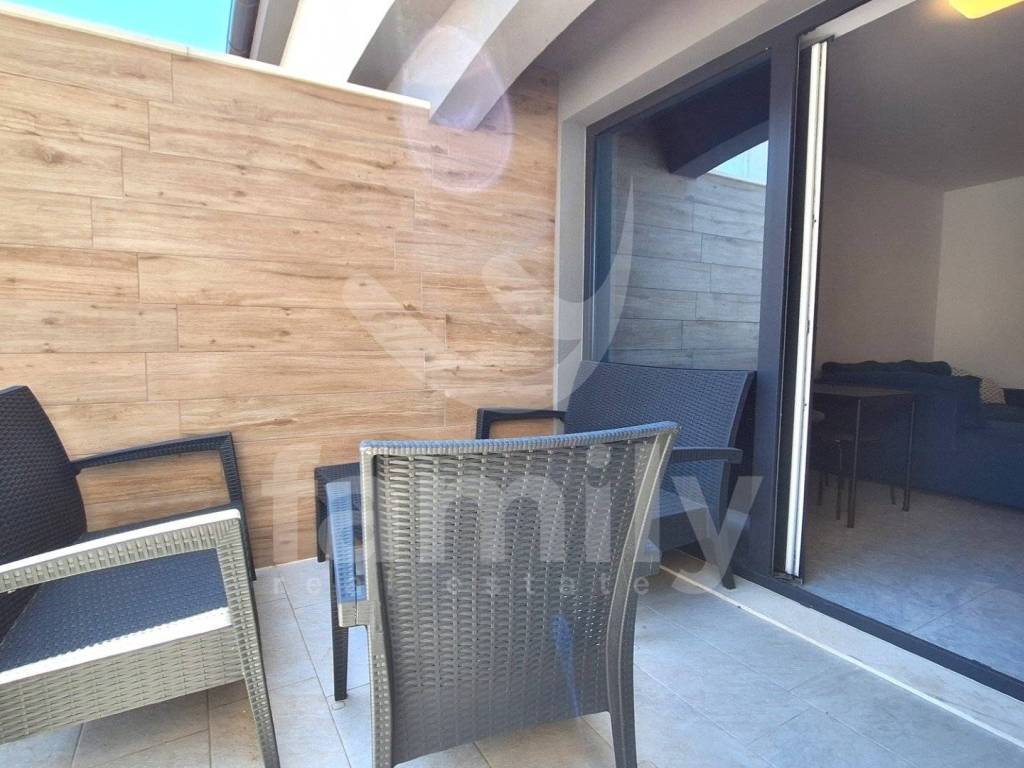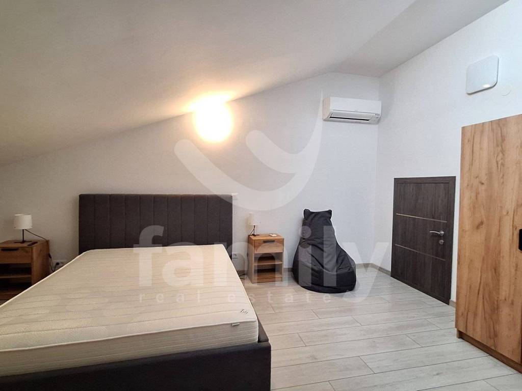 The apartment with a total area of 108 m2 is located in Pješčana Uvala, one of the most luxurious settlements within the municipality of Medulin. The apartment is located on the second floor of a residential building with a total of 24 residential units and extends over two floors. The ground floor consists of an entrance hall, living room, kitchen and dining area with access to a balcony with a total area of 10 m2, as well as a bathroom with a walk-in shower. A spiral staircase leads to the second floor of the property and it consists of 2 bright bedrooms with laminate flooring, while the rest of the apartment is covered with high-quality ceramics. Each bedroom is also equipped with a Mitsubishi air conditioning unit, while the bathrooms have underfloor heating. On the same floor, there is a bathroom equipped with a walk-in shower, a built-in cistern and a BOSCH water heater. High-quality anthracite-colored PVC flooring with double glazing has been installed throughout the property, which ensures sound and thermal insulation, and VELUX skylights with blackout curtains have been installed. The building also has an elevator, which makes everyday life easier, and 2 garage parking spaces are provided. Electricity and water meters are separate.